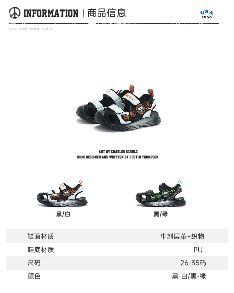 商品名称:【史努比夏季热卖】中大儿童舒适凉爽简约休闲包头凉鞋运动凉鞋 522909