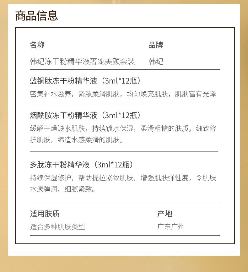 商品名称:Hankey/韩纪 冻干粉精华奢宠美颜套装 补水嫩肤