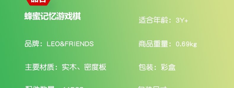 商品名称:里奥和朋友 (LEO FRIENDS) 蜜蜂2合1记忆游戏棋