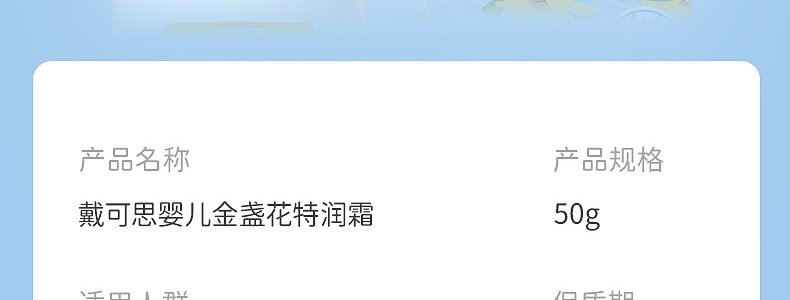 商品名称:戴可思(Dexter)婴儿金盏花特润面霜 50g