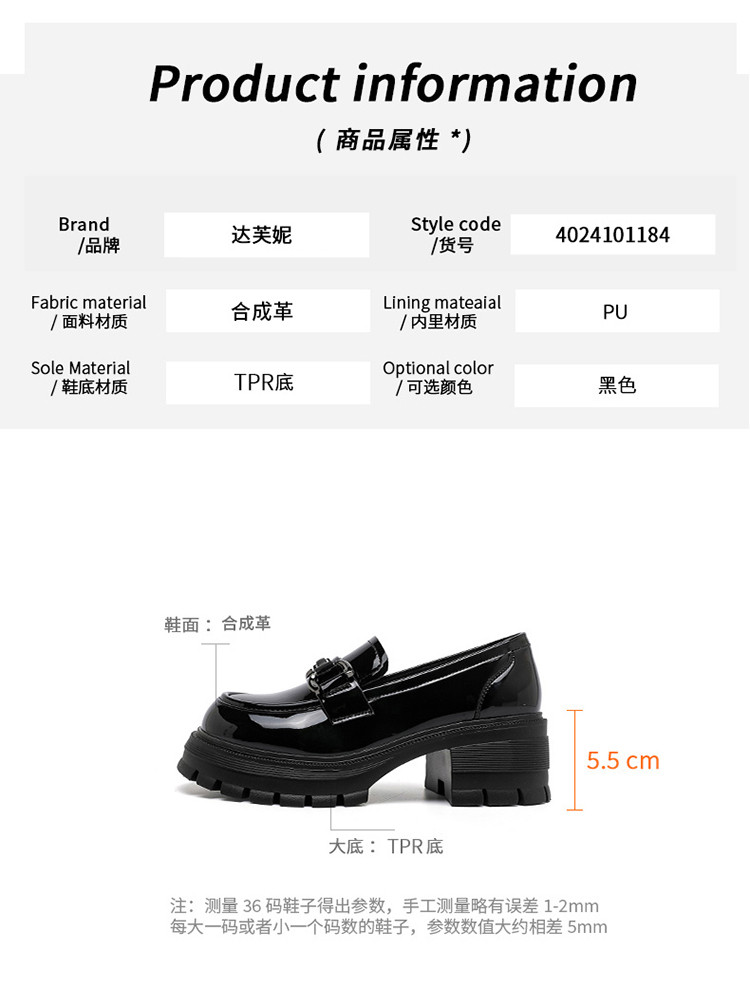商品名称:春夏厚底乐福鞋女轻便浅口时尚单鞋英伦学院风JK制服鞋通勤鞋 826519