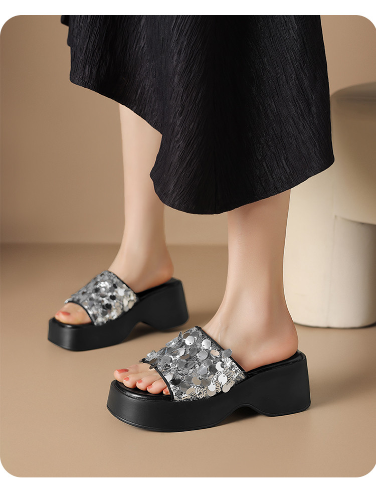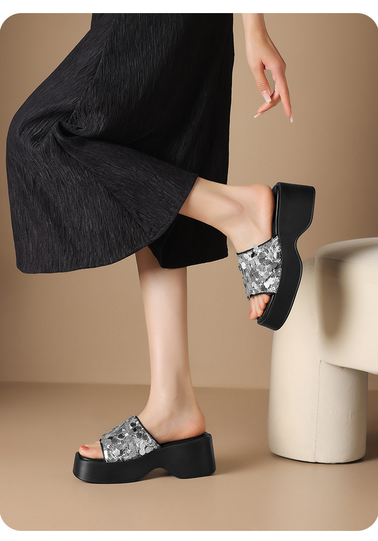 商品名称:【增高7CM】夏季亮片女拖鞋时尚厚底外穿拖鞋时装拖鞋沙滩拖鞋 694423