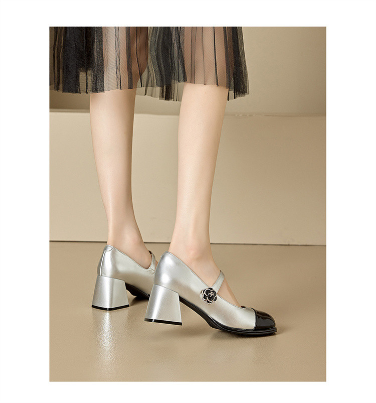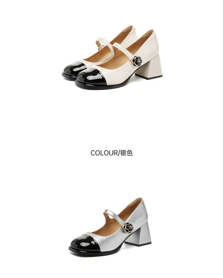 【秒增6CM】春夏拼色玛丽珍鞋高跟鞋复古乐福鞋单鞋通勤鞋女鞋 033178