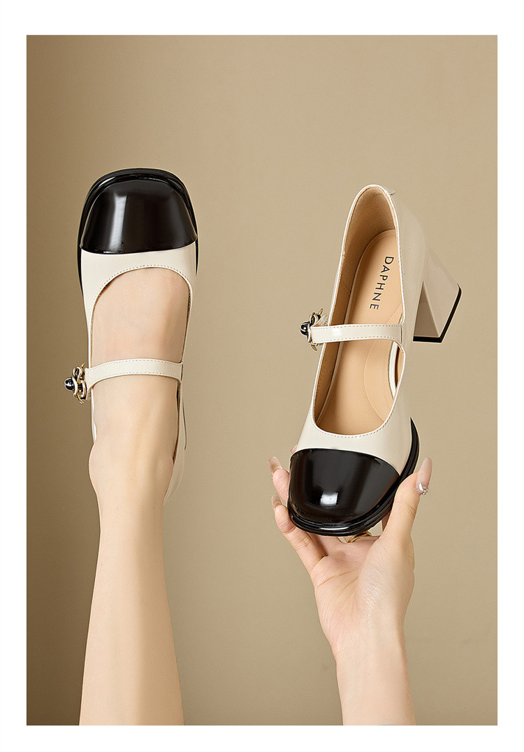 商品名称:【秒增6CM】春夏拼色玛丽珍鞋高跟鞋复古乐福鞋单鞋通勤鞋女鞋 033178