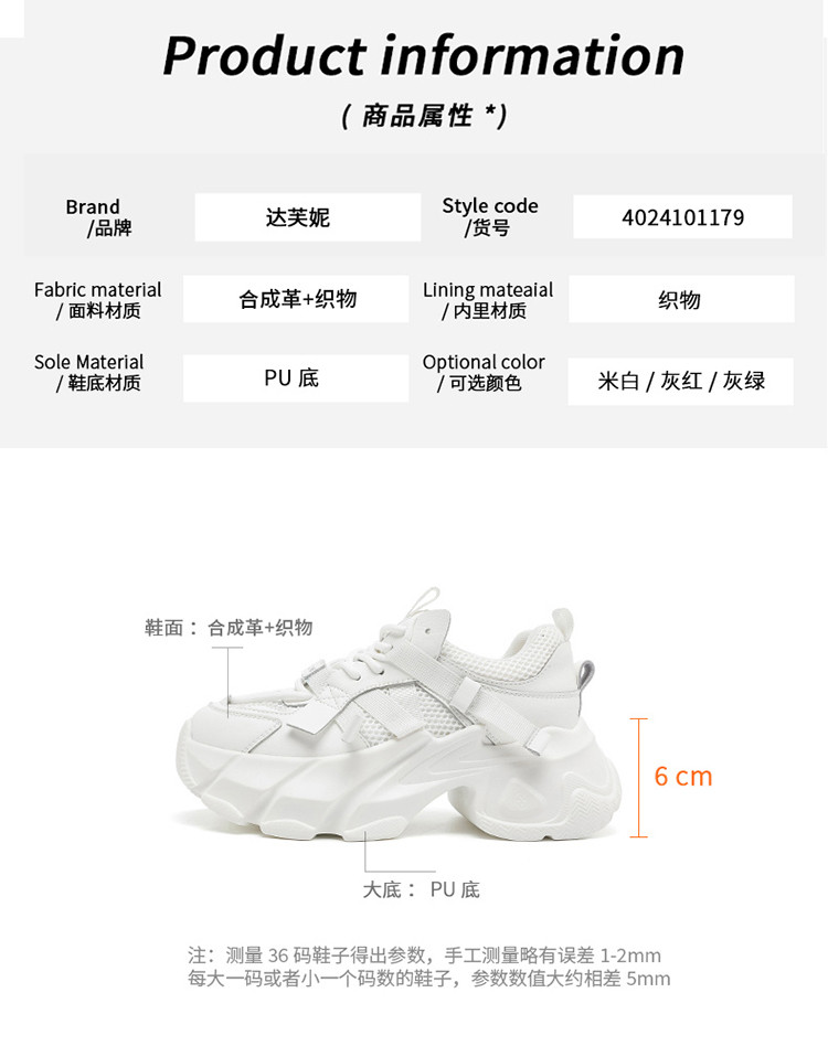 商品名称:春夏透气轻薄老爹鞋女百搭厚底鞋学生鞋网面轻便运动休闲鞋跑步鞋 990359
