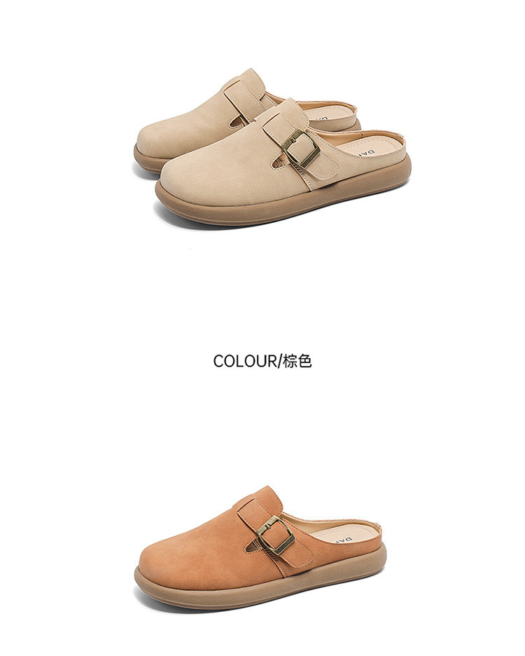 【舒适百搭】时尚半拖鞋平底真皮垫女士穆勒凉拖单鞋女鞋 156826