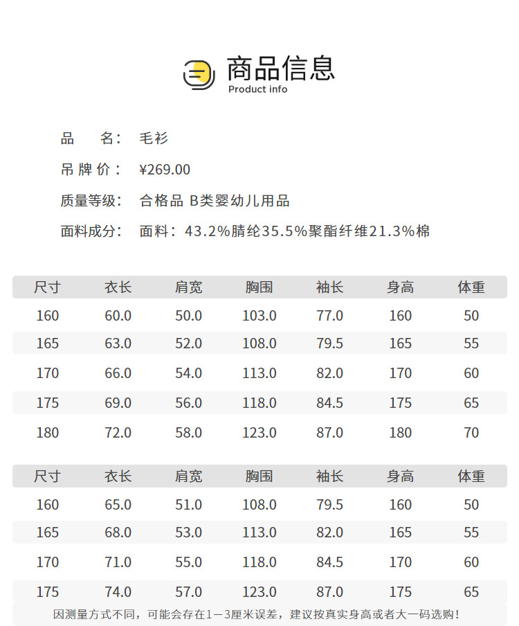 | 100cm | 39.0 | 32.5 | 100 | 45.0 | 2-3岁 | 69.0 | 100/52 |