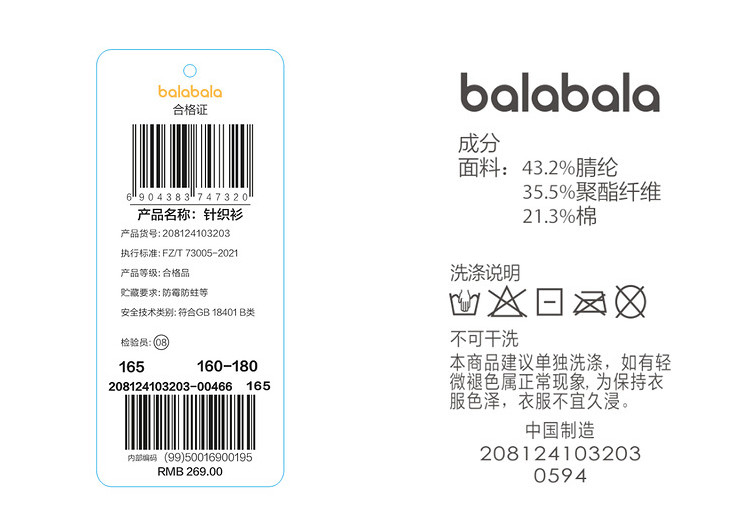 | 165cm | 63.0 | 52.0 | 165 | 84.5 | 14-15岁 | 108.0 | 165/84A |