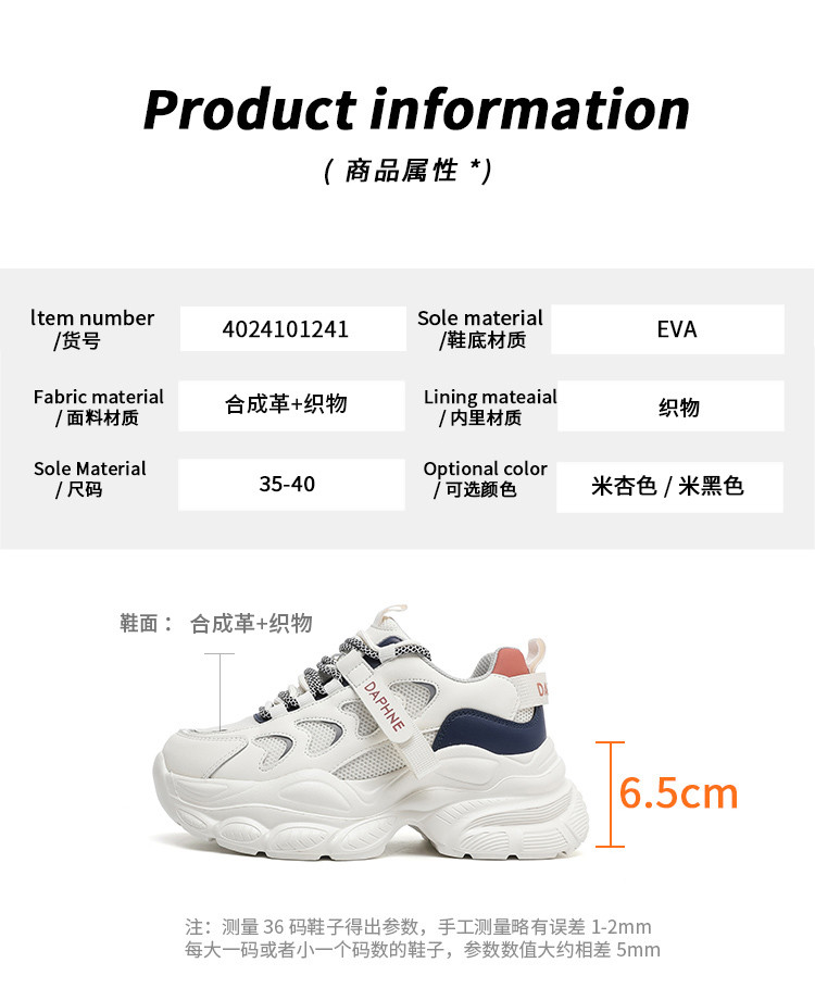 商品名称:老爹鞋女春夏薄款透气网面鞋厚底鞋显脚小轻便小个子增高休闲鞋 349207
