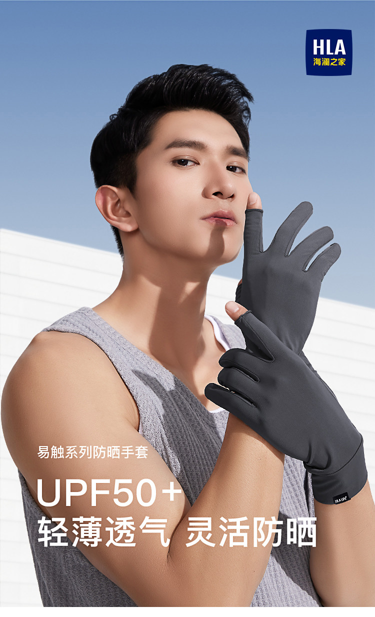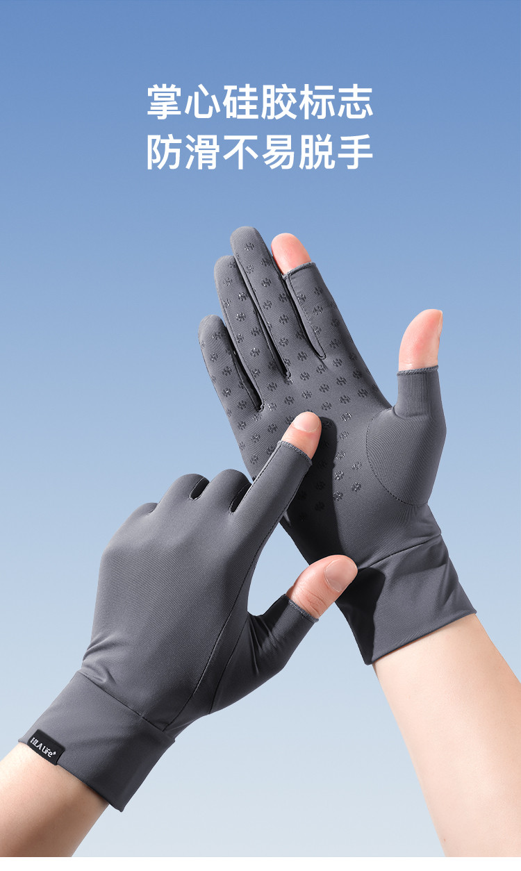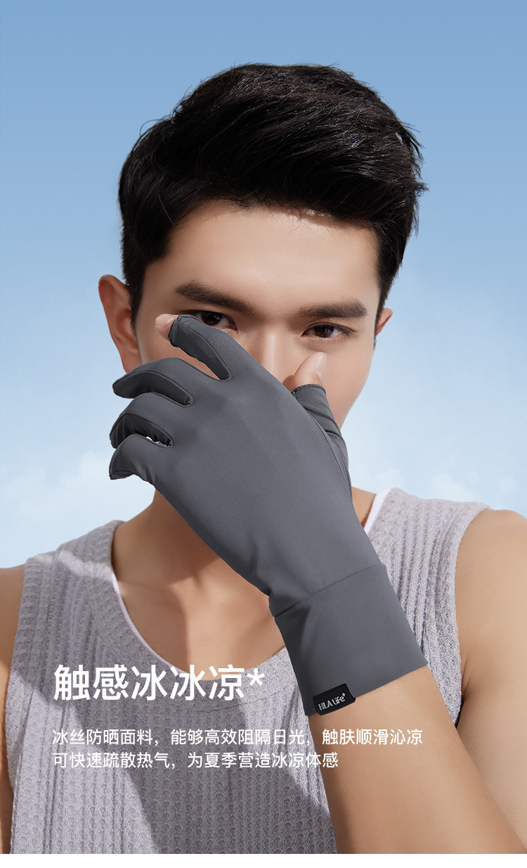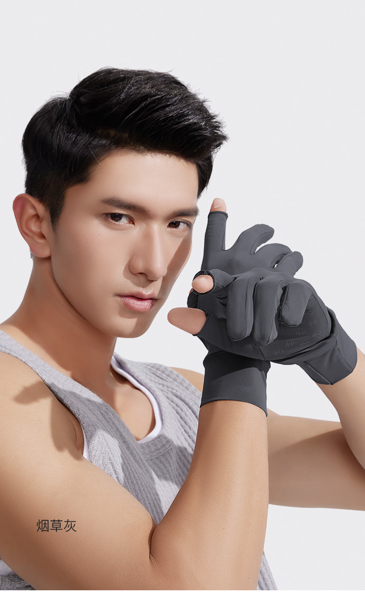 防晒手套男夏季薄款开车骑行运动防滑棉透气户外春夏触屏露指手套 237334