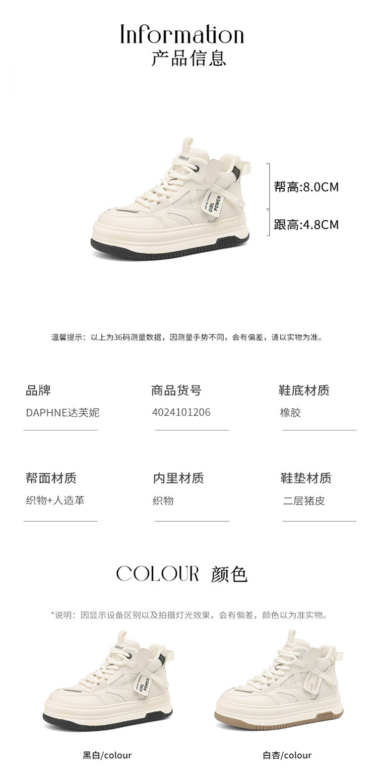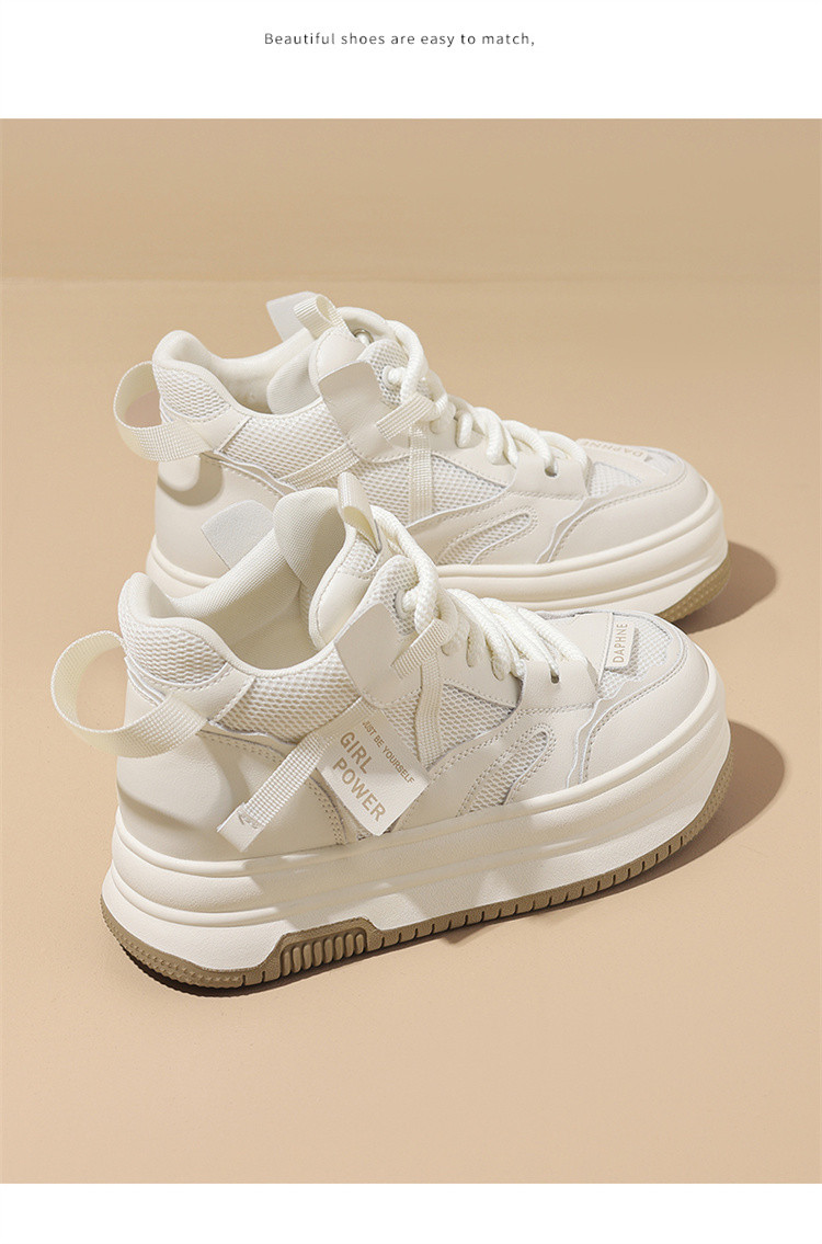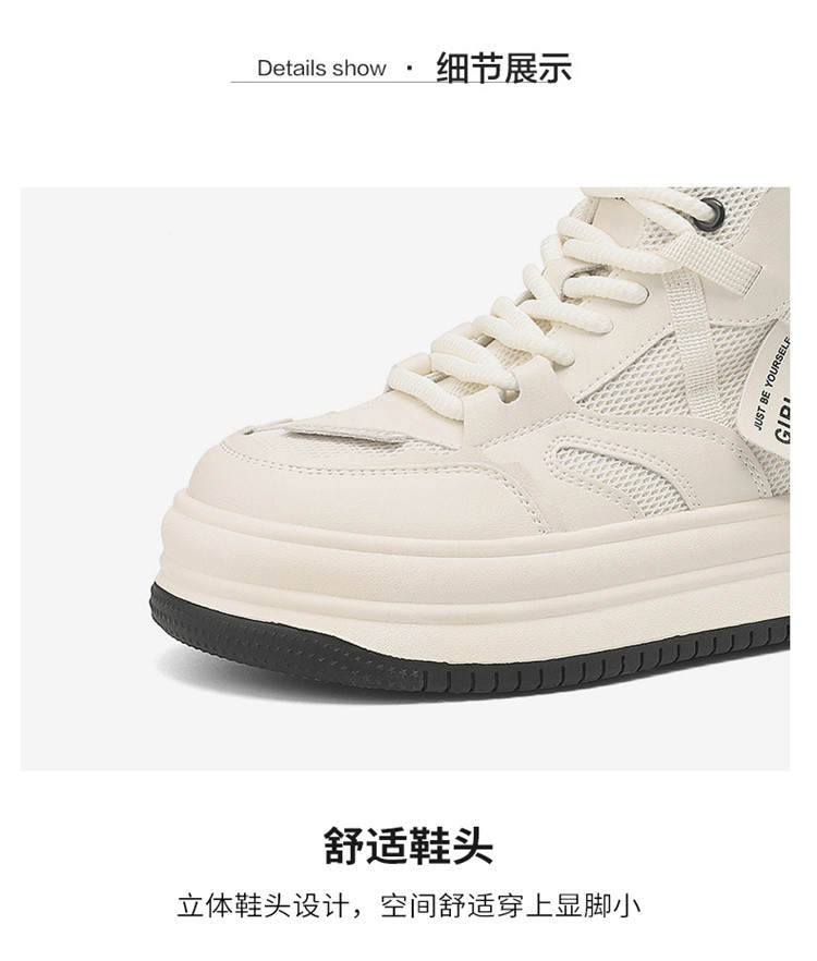 商品名称:高帮板鞋女夏季百搭简约风小白鞋女轻便透气休闲运动鞋时尚厚底鞋 918743