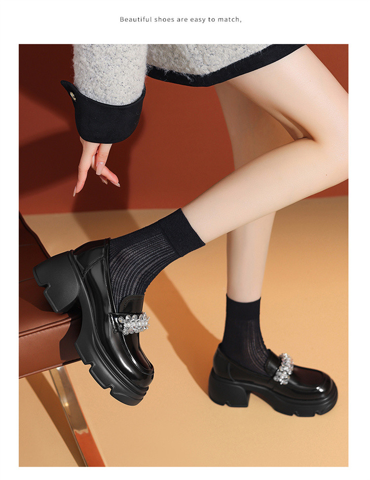 商品名称:夏季厚底乐福鞋女英伦风时尚深口单鞋百搭通勤鞋学院风JK制服鞋 962071