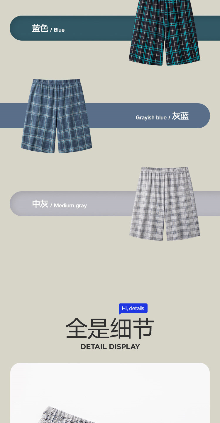商品名称:【100%纯棉】2条装男士睡裤夏季薄款家居裤可外穿大裤衩短裤 766618