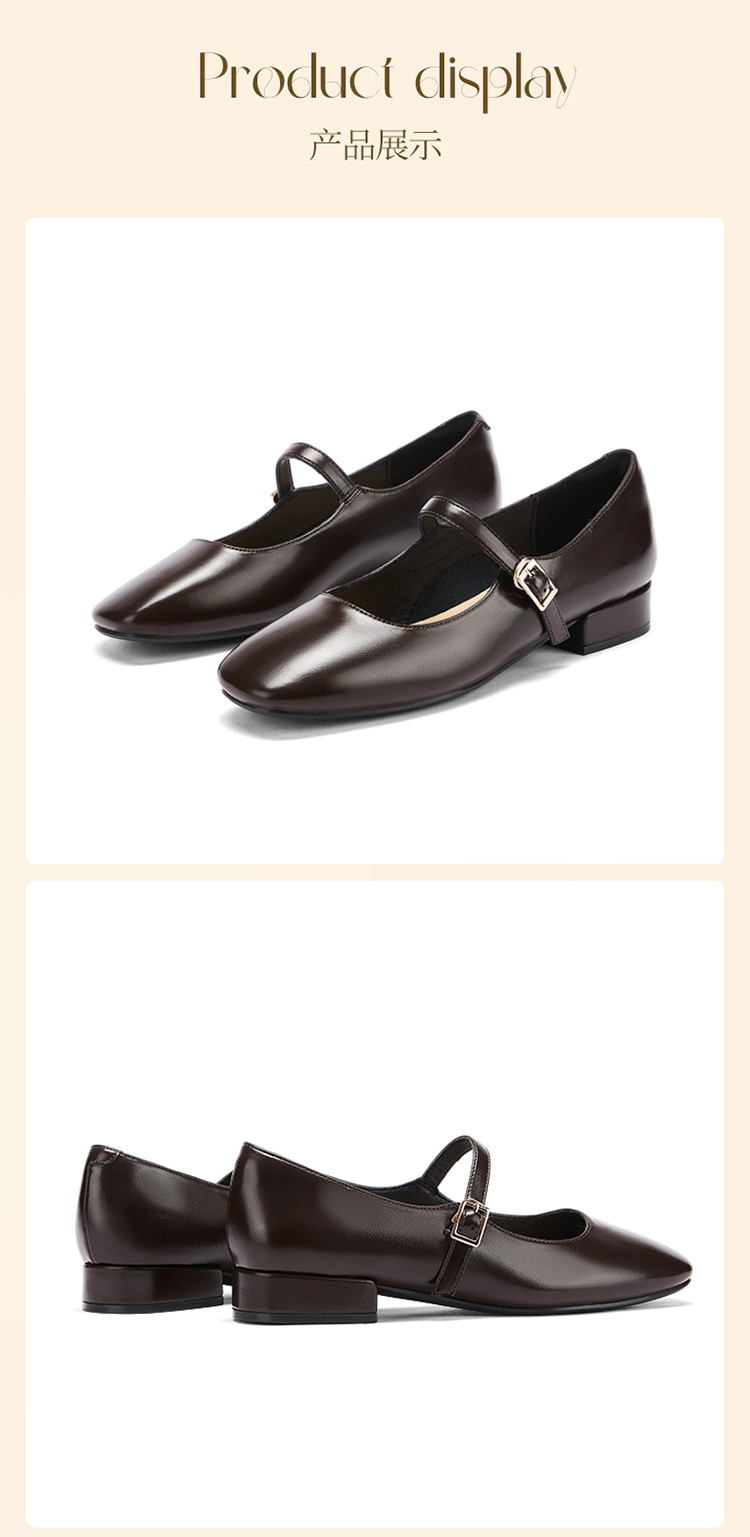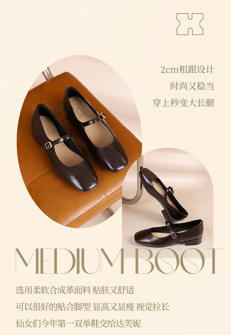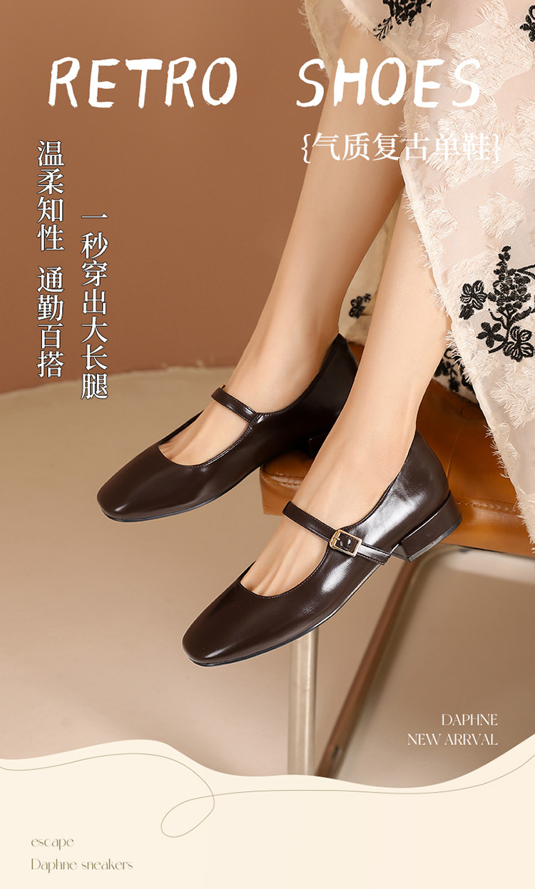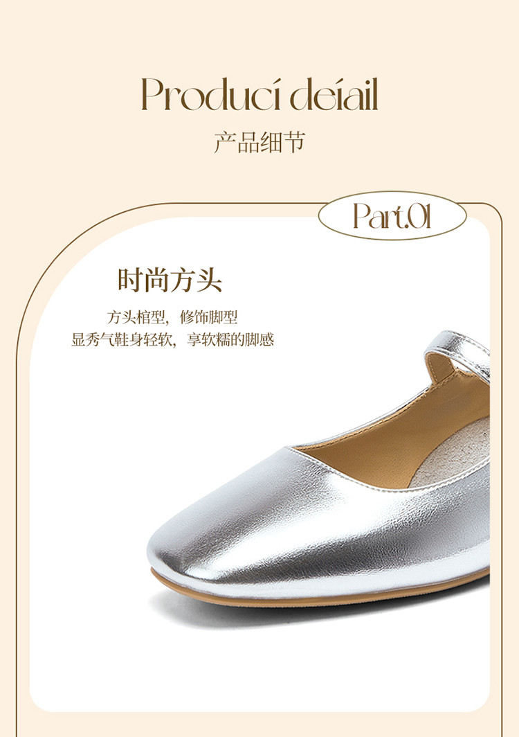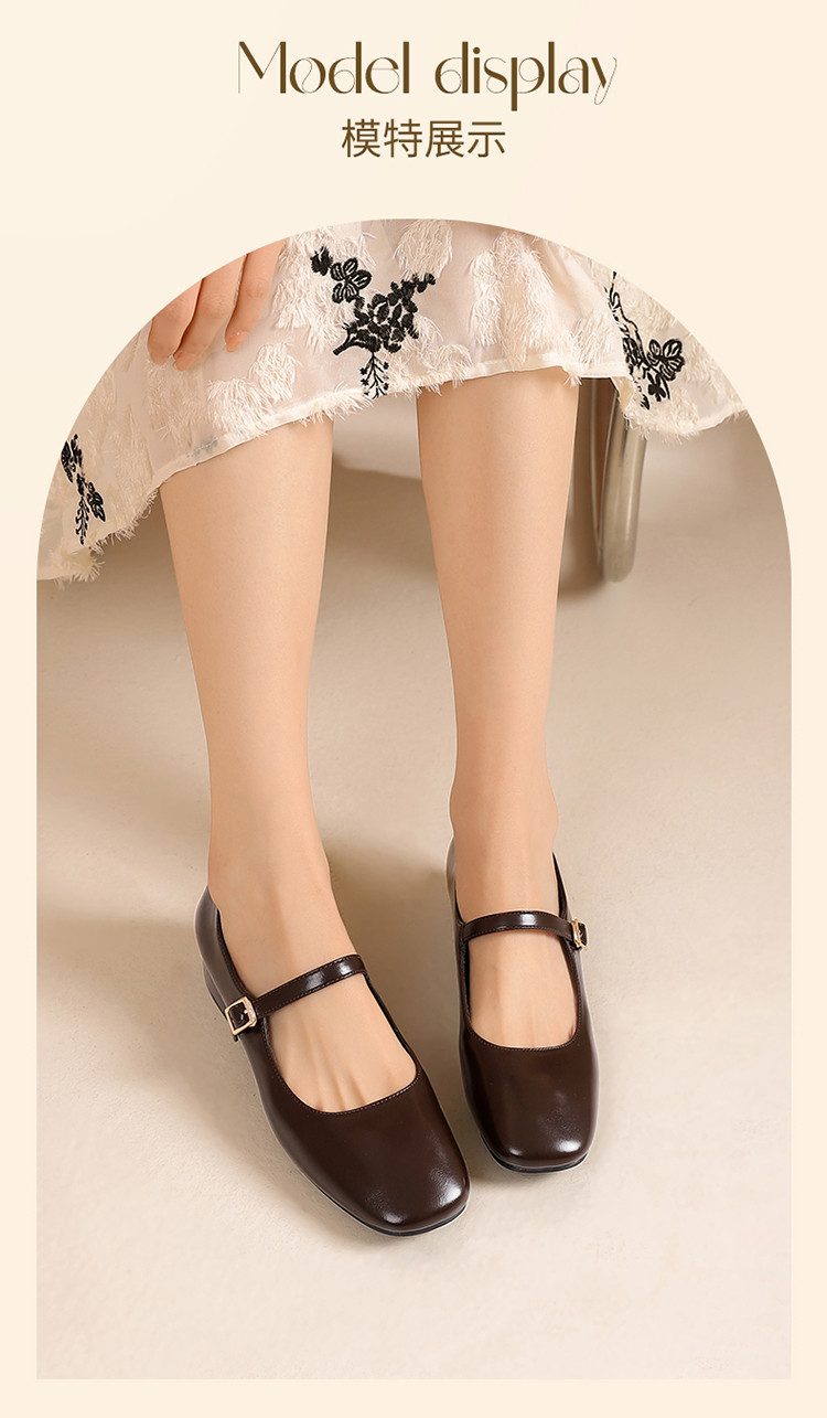 商品名称:法式时尚优雅通勤单鞋女春秋浅口芭蕾鞋中粗跟方头气质女单鞋 984474