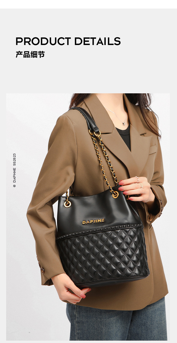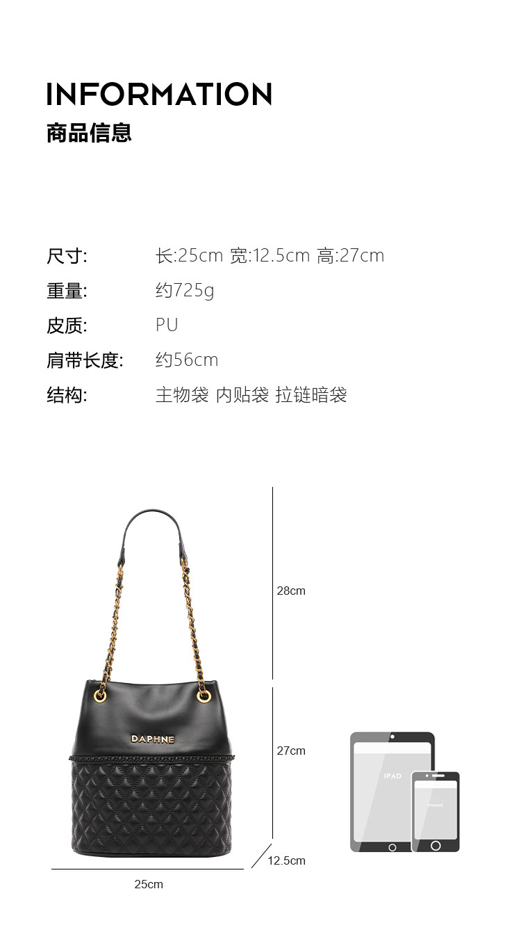 商品名称:大容量链条菱格包通勤单肩腋下斜挎时尚高级感托特包水桶手提包 872279