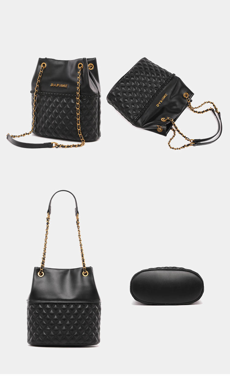 大容量链条菱格包通勤单肩腋下斜挎时尚高级感托特包水桶手提包 872279