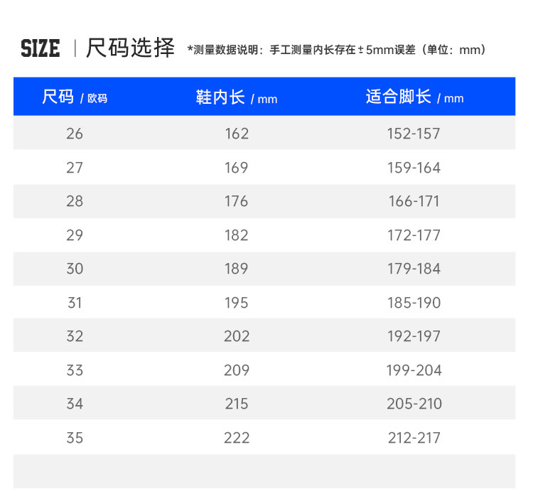 鞋内长(mm)