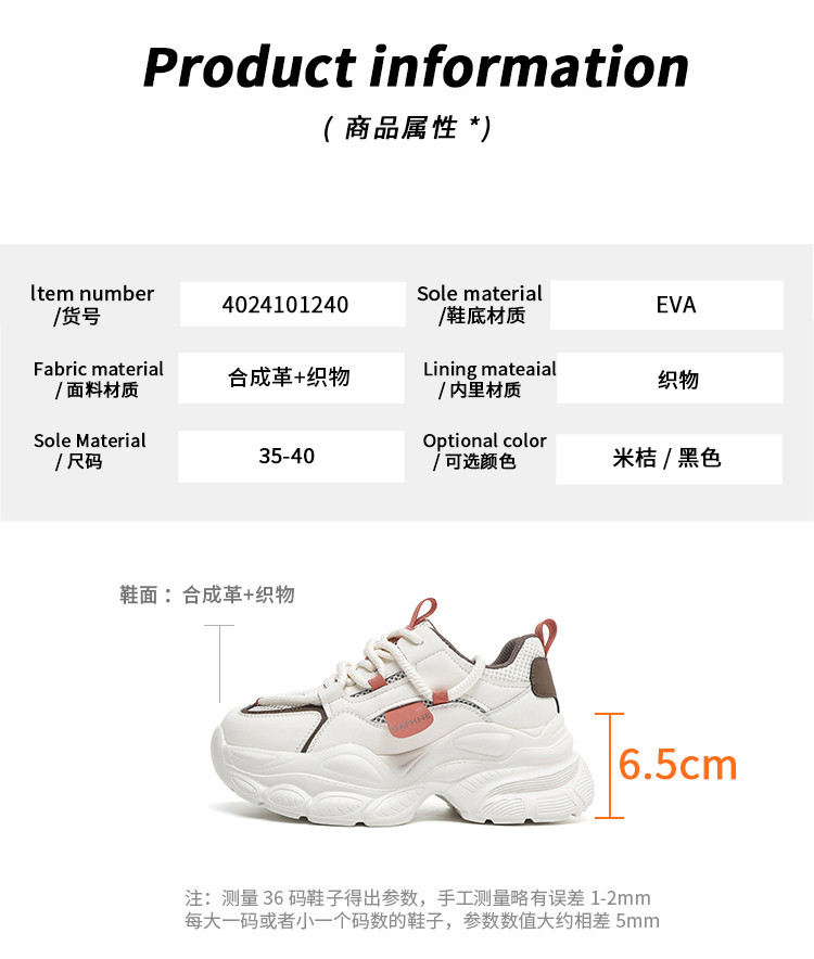 商品名称:老爹鞋女春夏百搭透气网面鞋小个子增高鞋显脚小轻便休闲运动鞋 488471