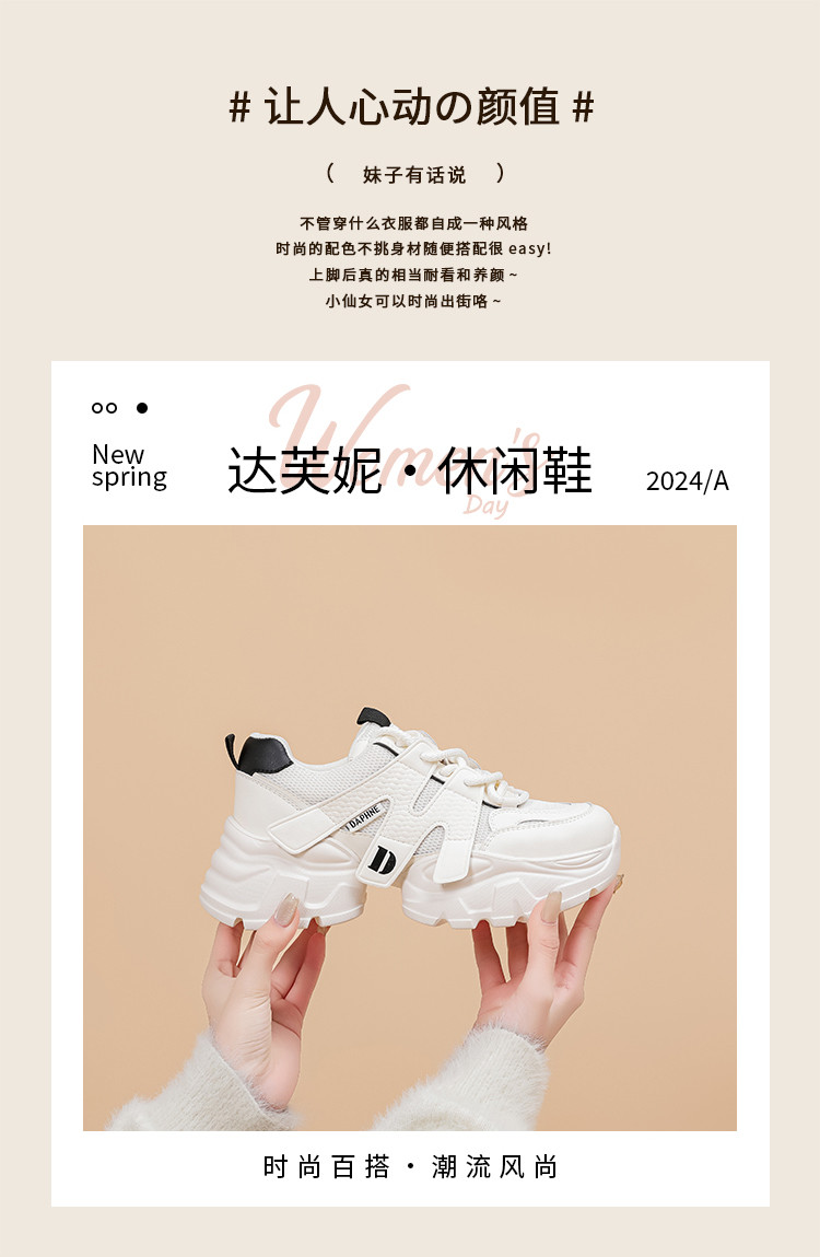 商品名称:春夏厚底老爹鞋女百搭舒适学生鞋小个子增高鞋女轻便休闲运动鞋 714263