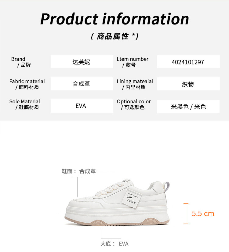 商品名称:春夏小白鞋女百搭厚底时尚板鞋熊猫鞋透气舒适轻便运动休闲鞋女鞋 374231