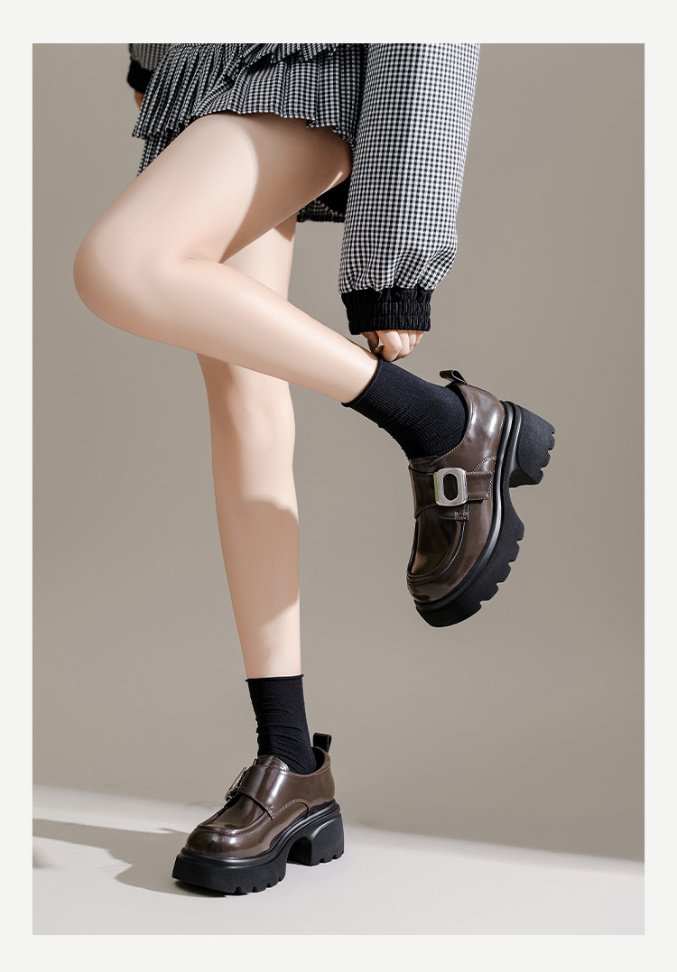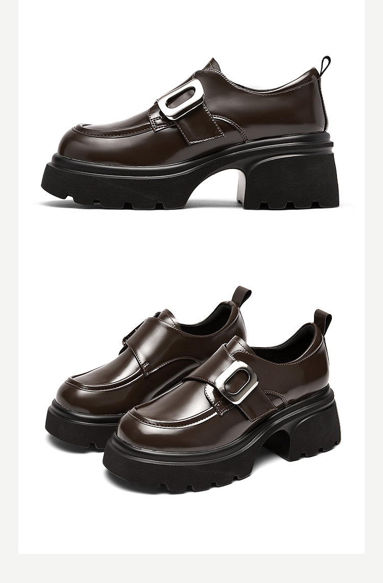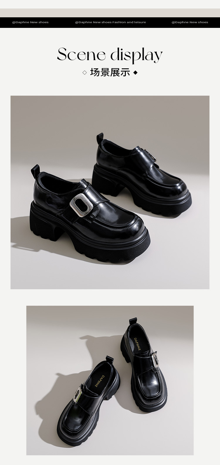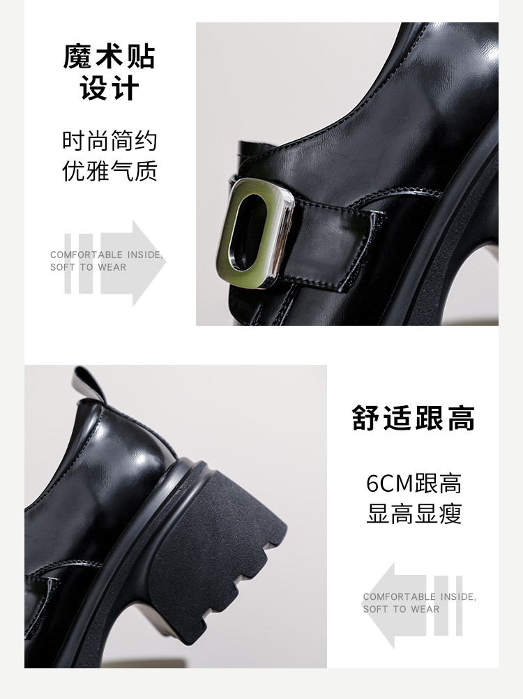 商品名称:春秋季乐福鞋学院亮面松糕厚底金属搭扣英伦风复古单鞋女 723738