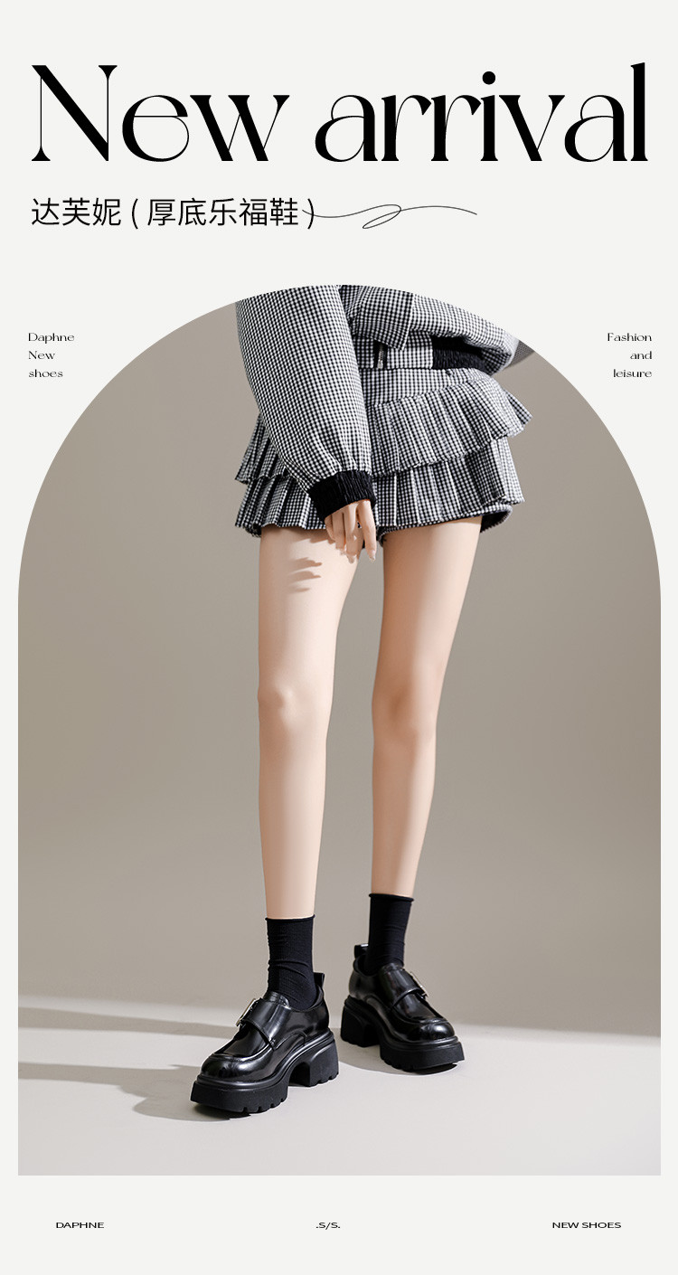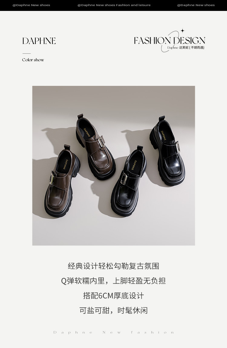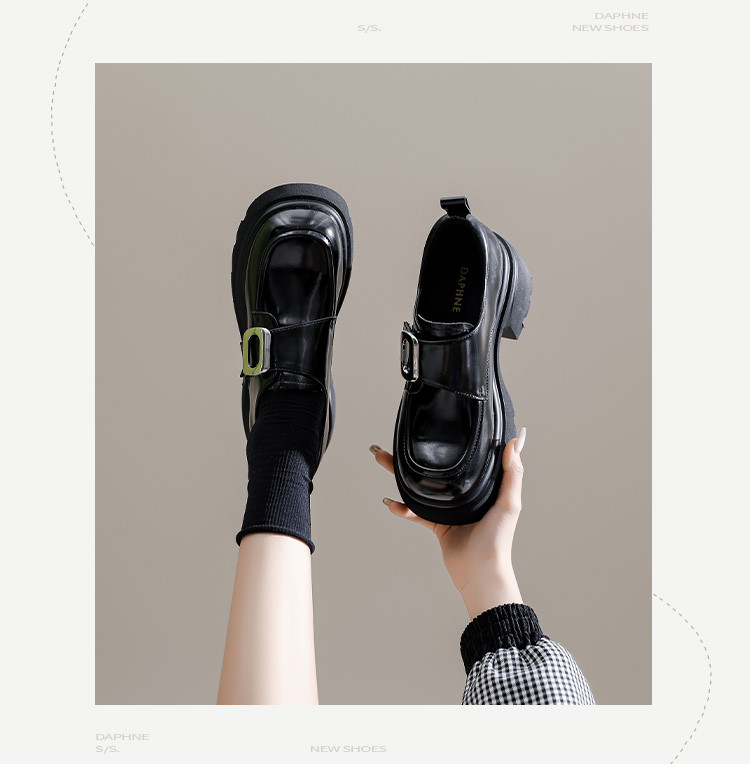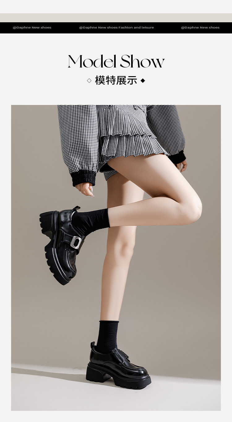 商品名称:春秋季乐福鞋学院亮面松糕厚底金属搭扣英伦风复古单鞋女 723738