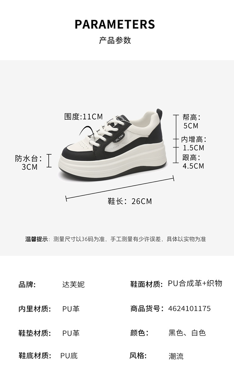 商品名称:【秒增6CM】夏季透气板鞋复古休闲鞋运动鞋百搭小白鞋女鞋 226775