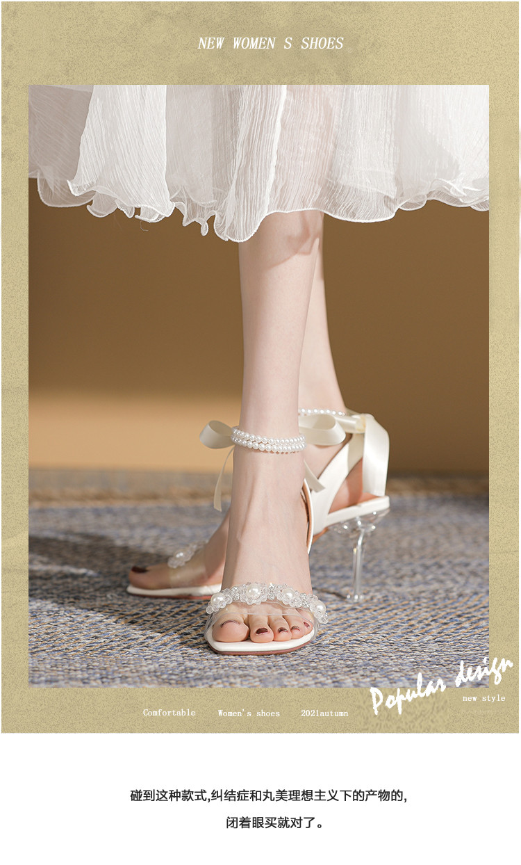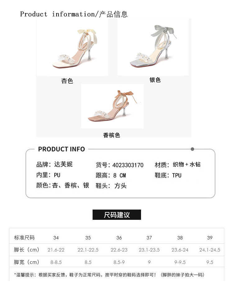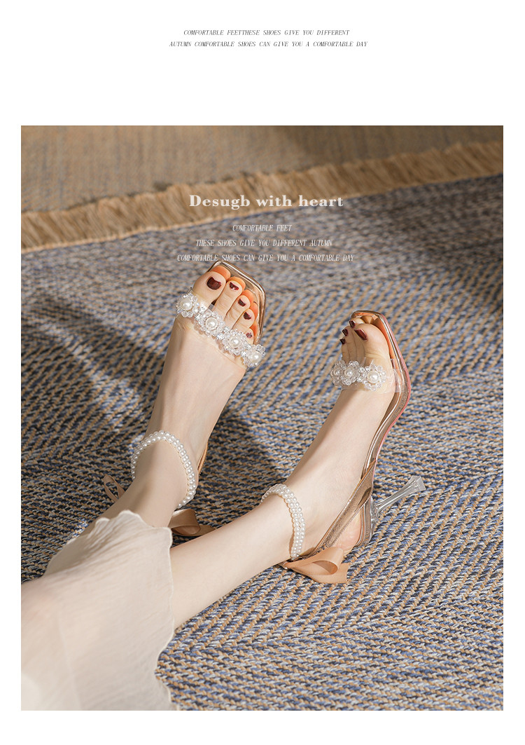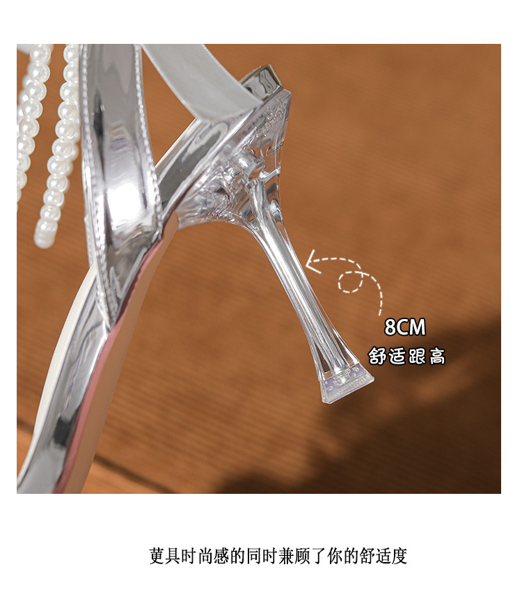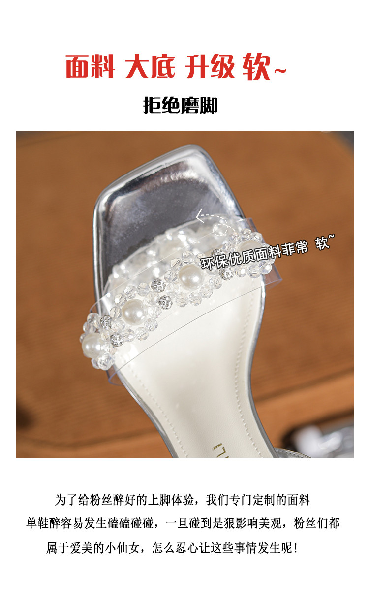 商品名称:夏季气质高跟鞋女一字带凉鞋珍珠饰扣女外穿凉拖鞋时尚百搭通勤鞋 724439