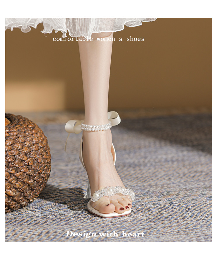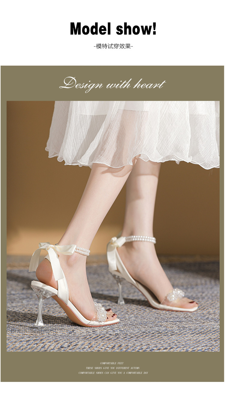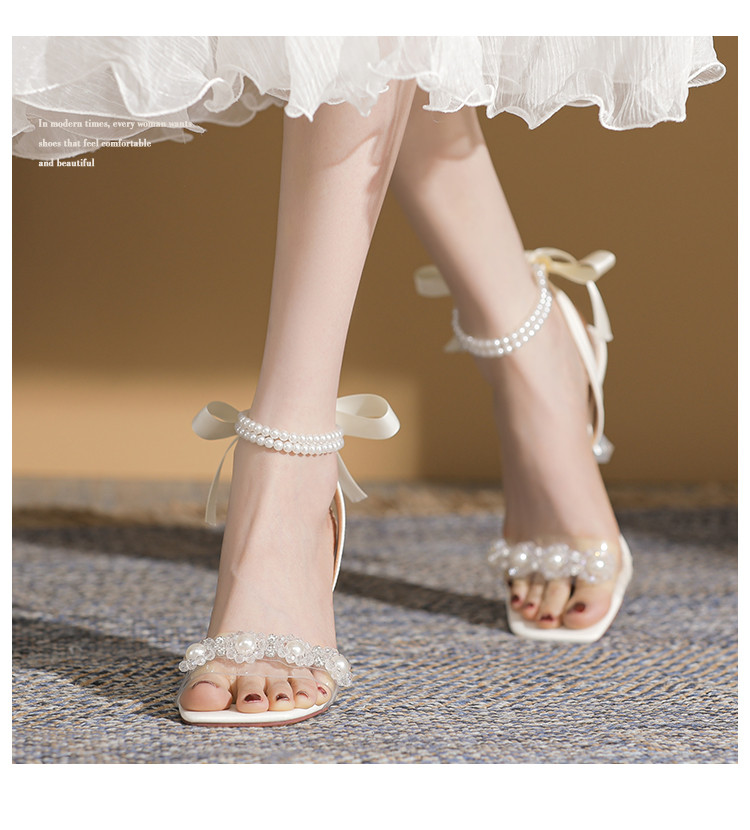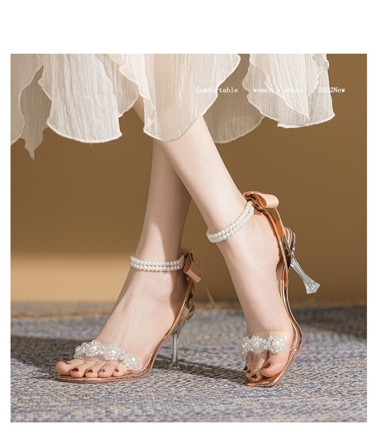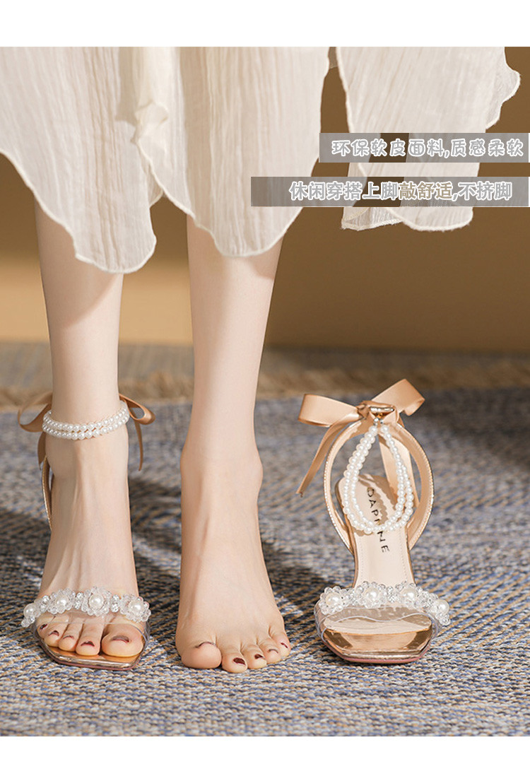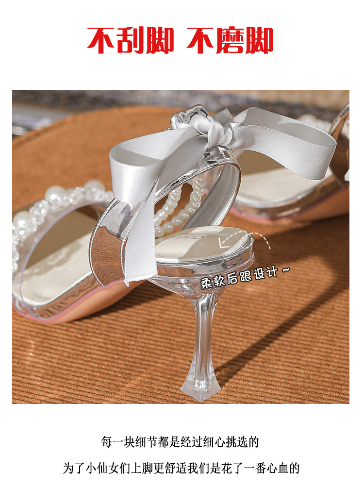 商品名称:夏季气质高跟鞋女一字带凉鞋珍珠饰扣女外穿凉拖鞋时尚百搭通勤鞋 724439