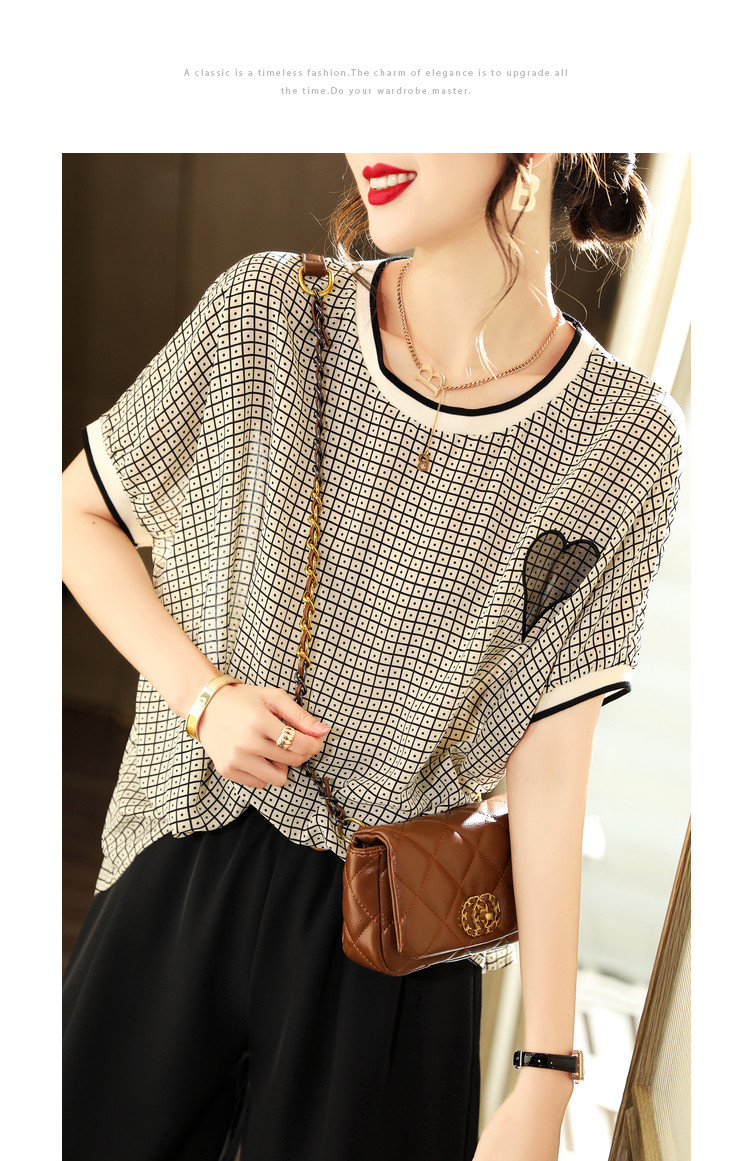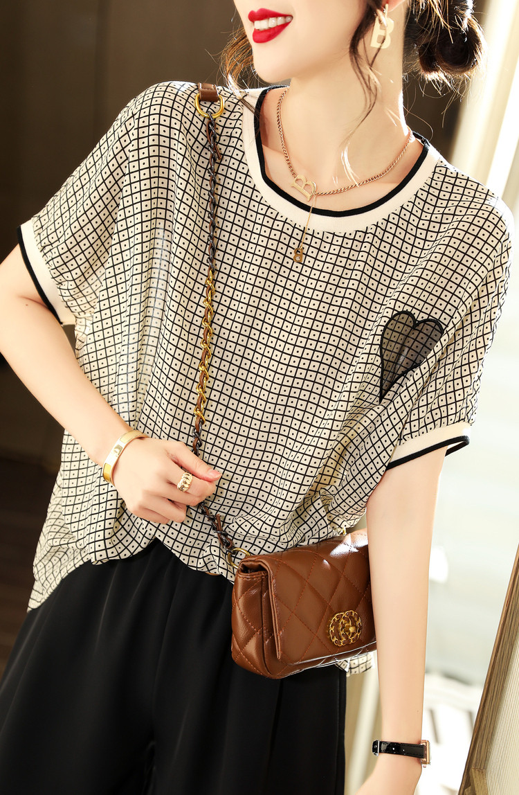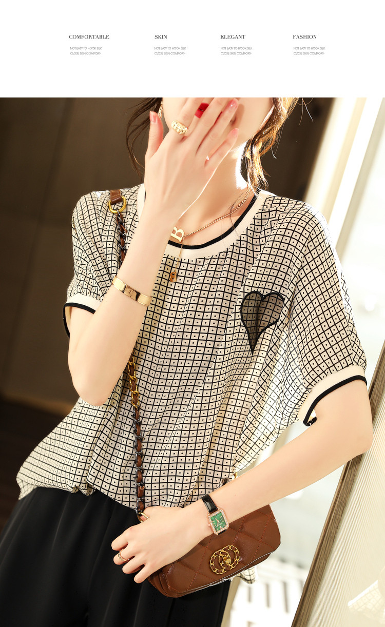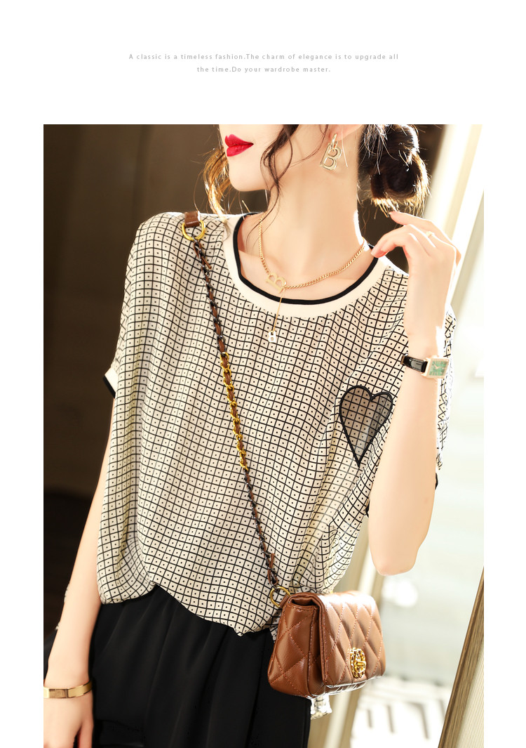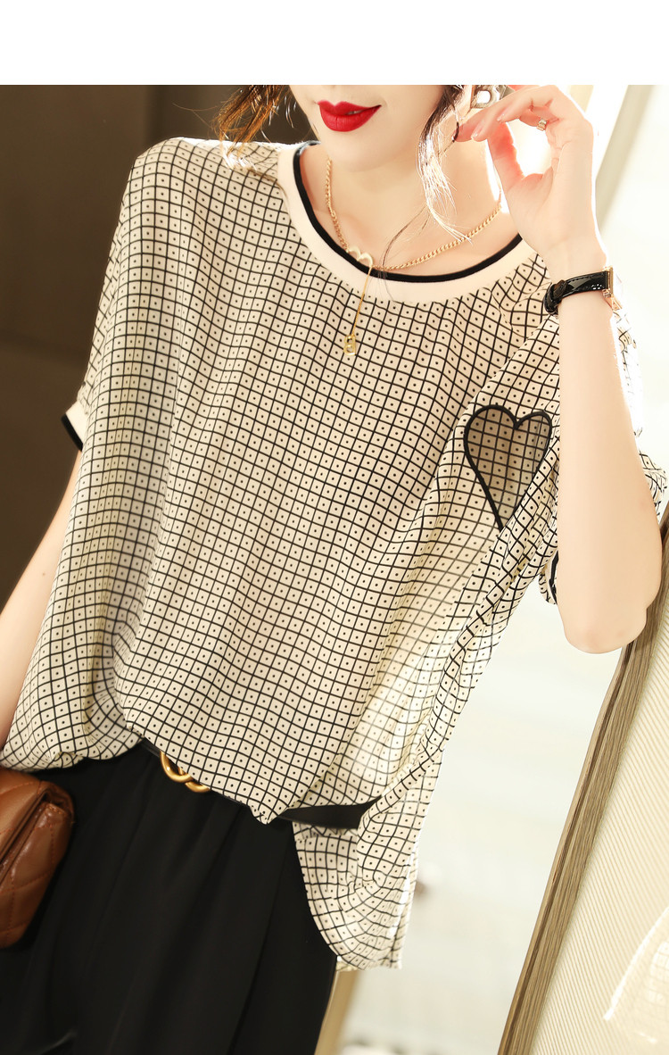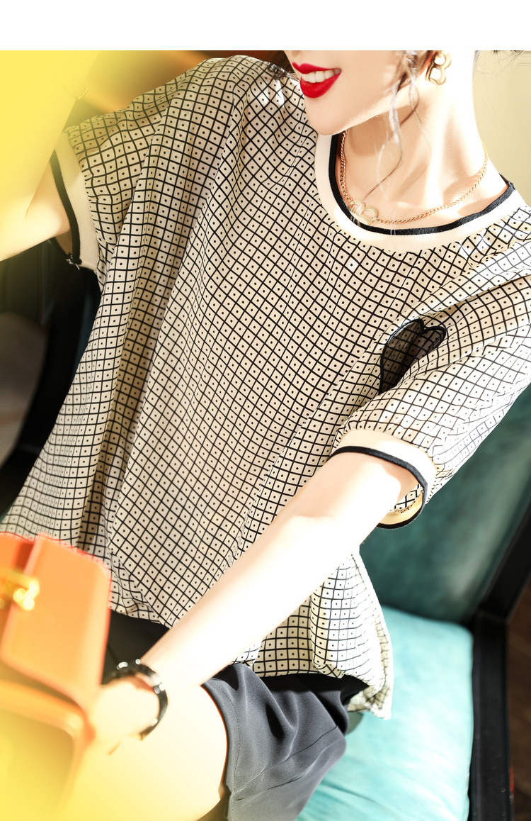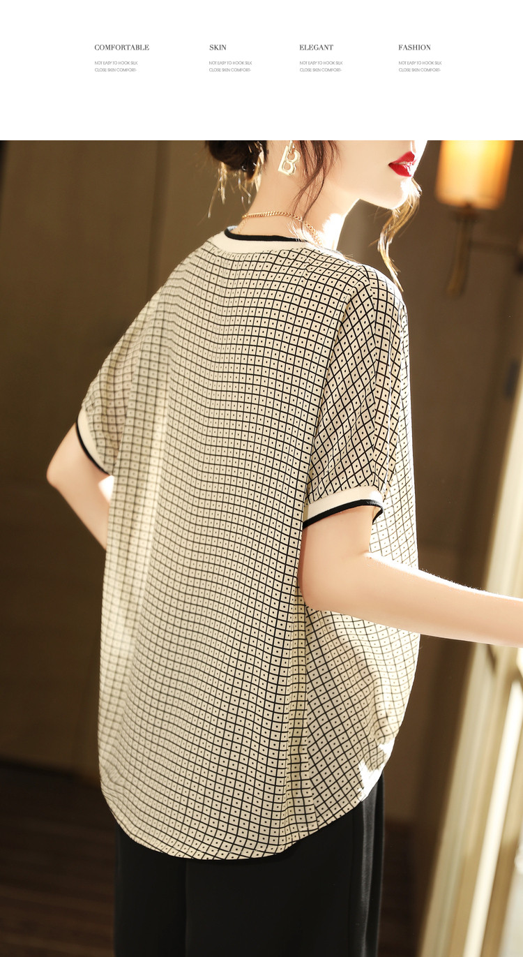 【超值捡漏】格子拼接宽松大码轻薄透气圆领短袖T恤女式上衣 511241