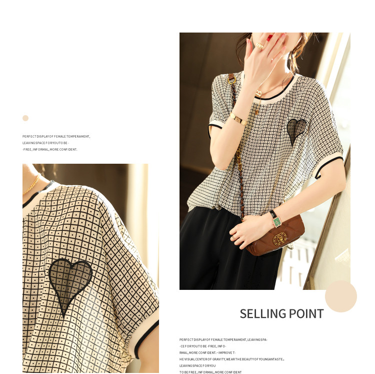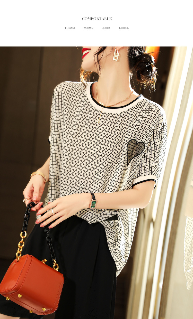 商品名称:【超值捡漏】格子拼接宽松大码轻薄透气圆领短袖T恤女式上衣 511241