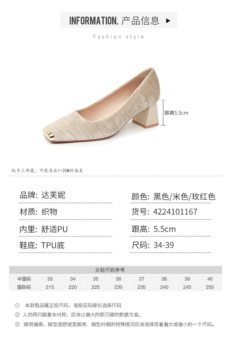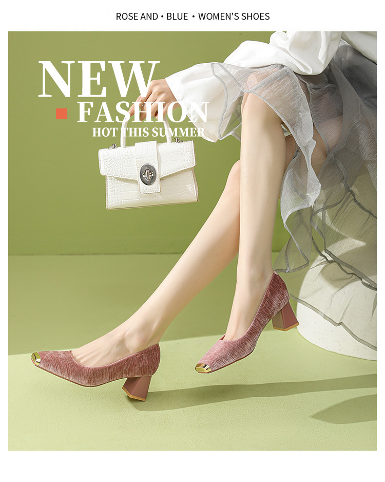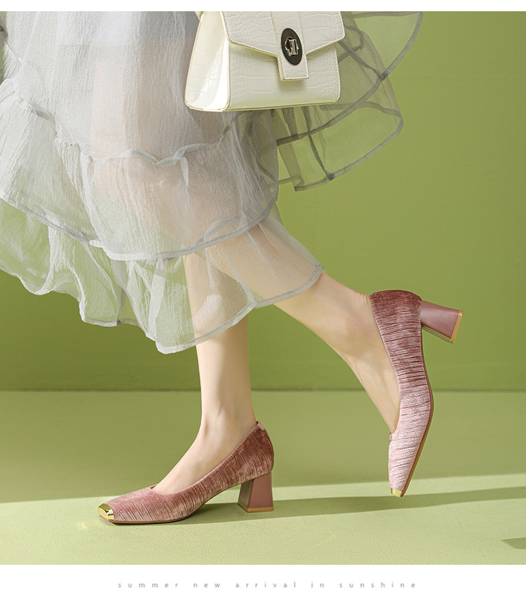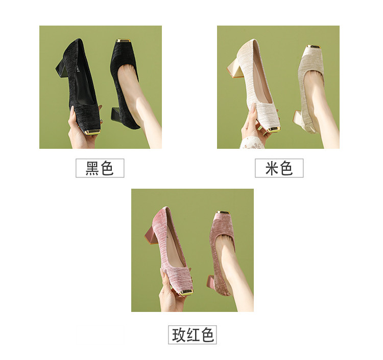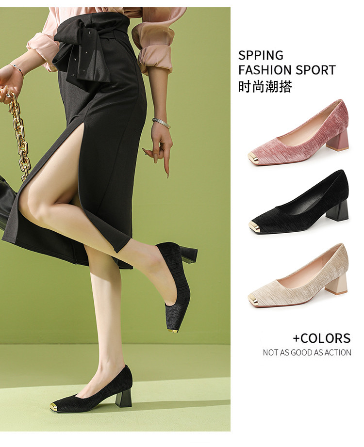 商品名称:法式气质性感OL单鞋女2025新款名媛风方头粗跟不累脚高跟鞋 860247