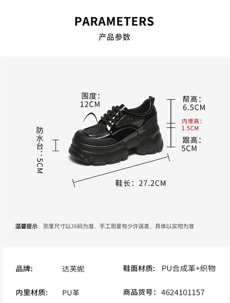 商品名称:【秒增6.5CM】夏季透气厚底内增高休闲鞋运动鞋百搭老爹鞋女 069719
