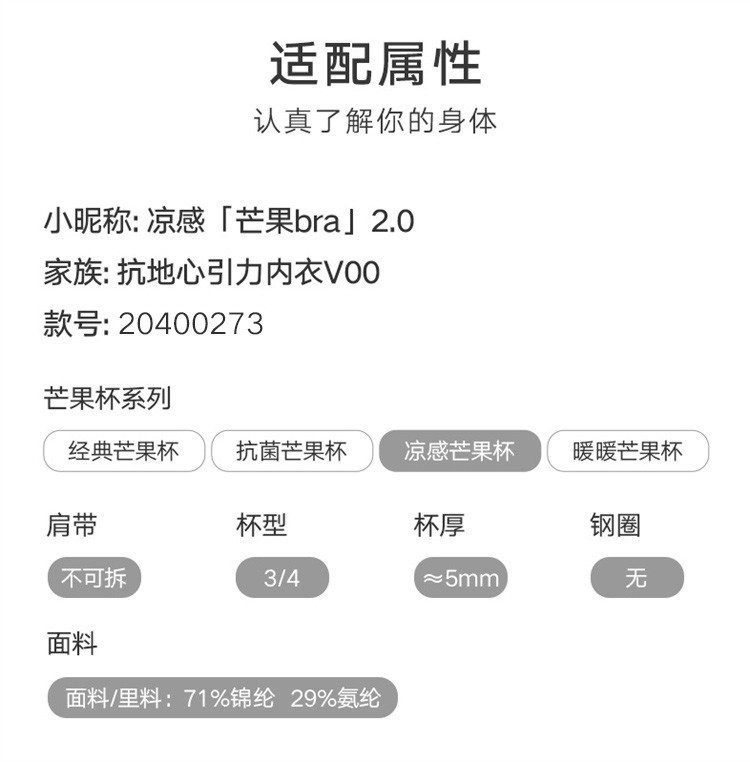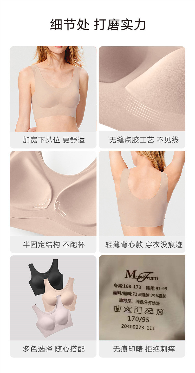 商品名称:芒果杯宋茜同款裸感有型背心式文胸无钢圈内衣无痕内衣胸罩聚拢 501723