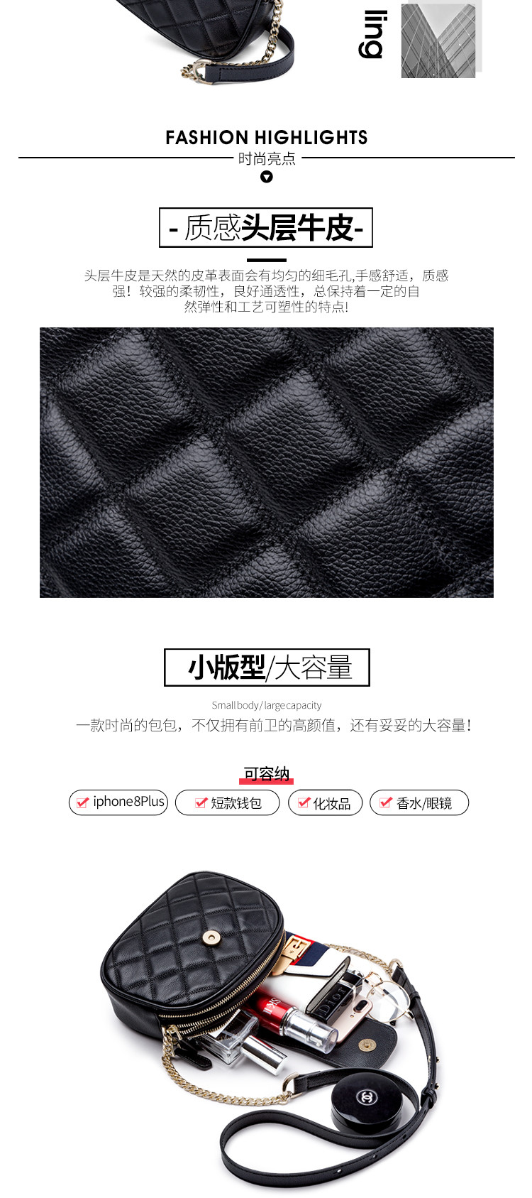 商品名称:520礼物轻奢高级感链条包菱格包斜挎牛皮单肩妈妈女包送爱人 807255