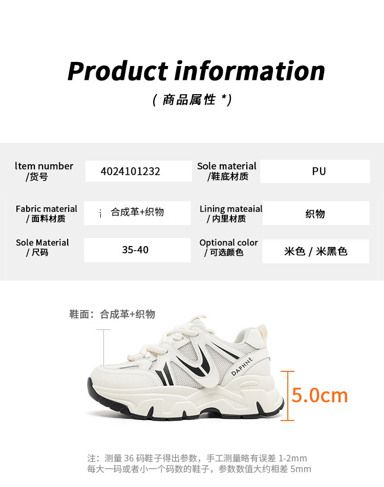 商品名称:老爹鞋女春夏轻薄透气厚底鞋舒适休闲运动鞋通勤鞋小个子增高 369687