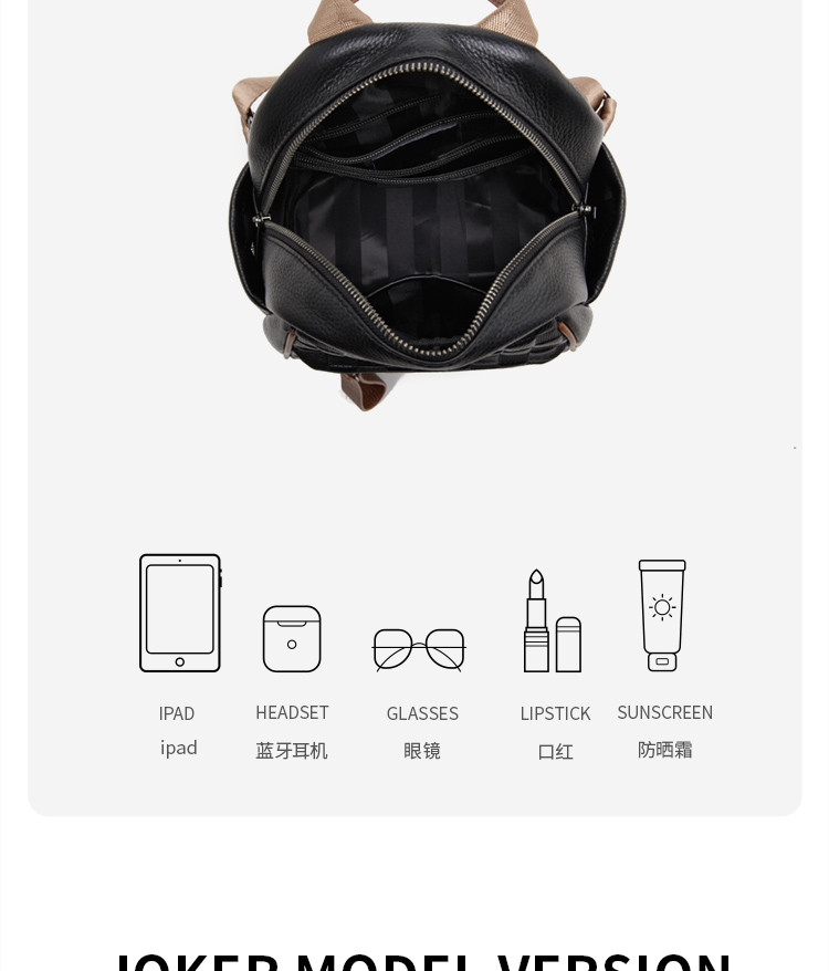 商品名称:【旅行必背】双肩包女时尚头层牛皮背包百搭双肩背包书包 762199