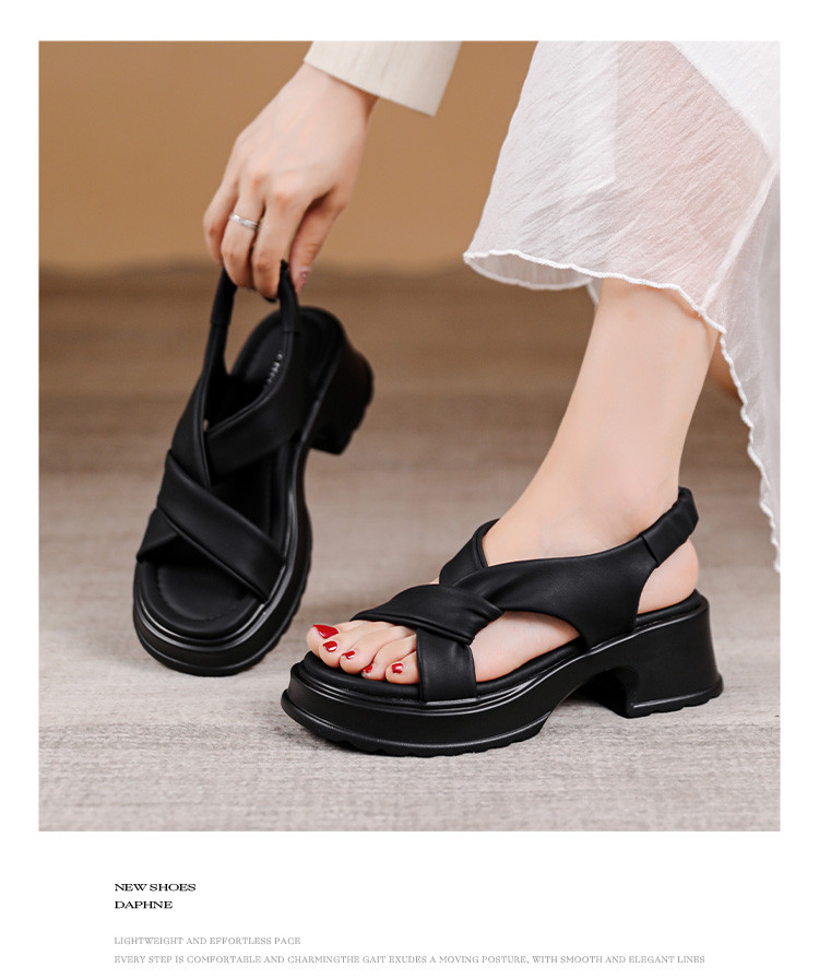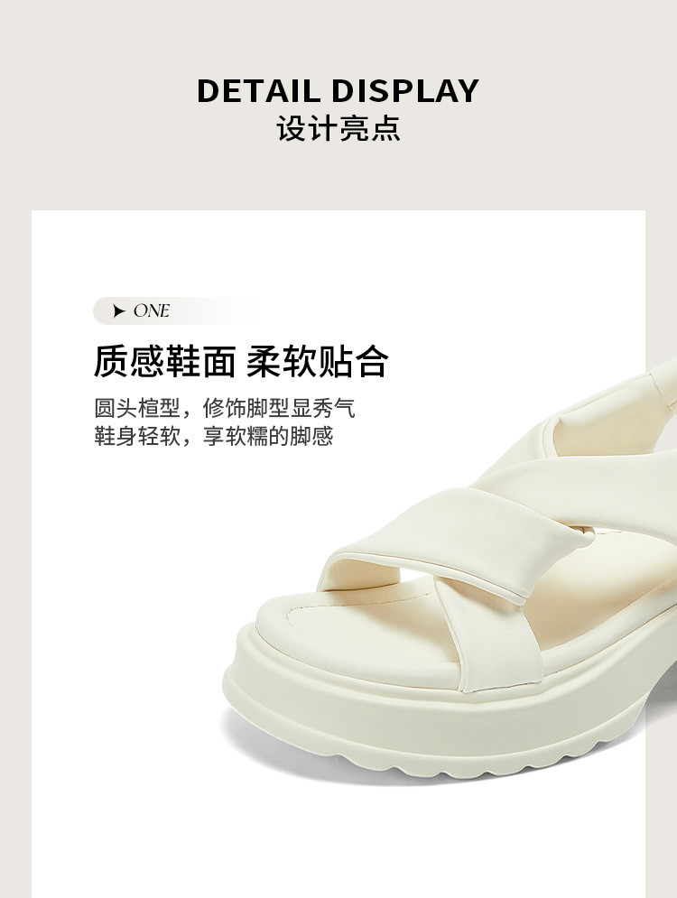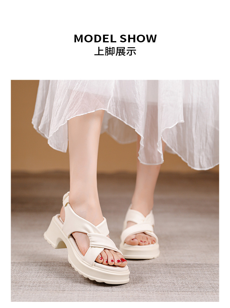商品名称:一字带凉鞋女夏季休闲沙滩粗跟高跟凉鞋仙女风女鞋子 043034