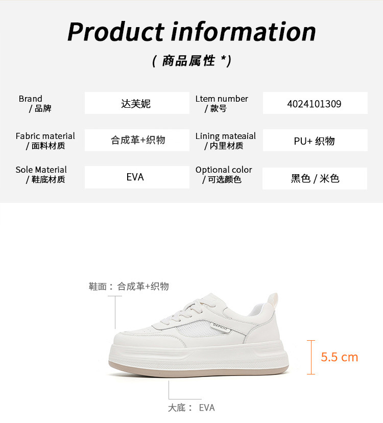 商品名称:春夏透气网面鞋女百搭简约风小白鞋女厚底鞋时尚板鞋轻便休闲女鞋 611799