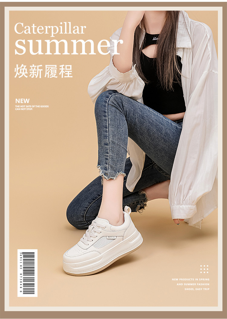春夏透气网面鞋女百搭简约风小白鞋女厚底鞋时尚板鞋轻便休闲女鞋 611799