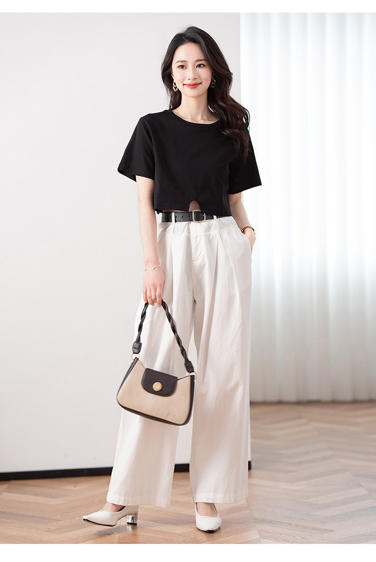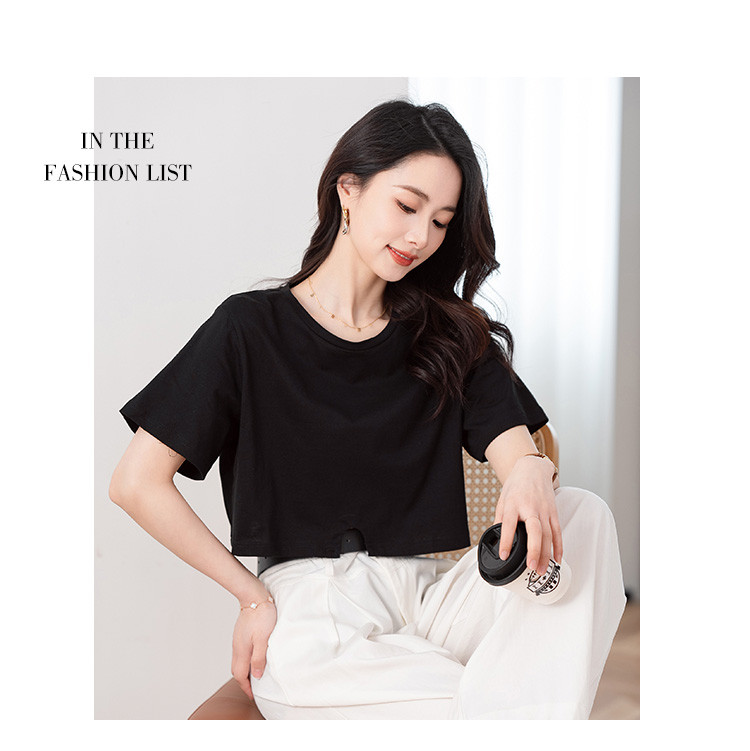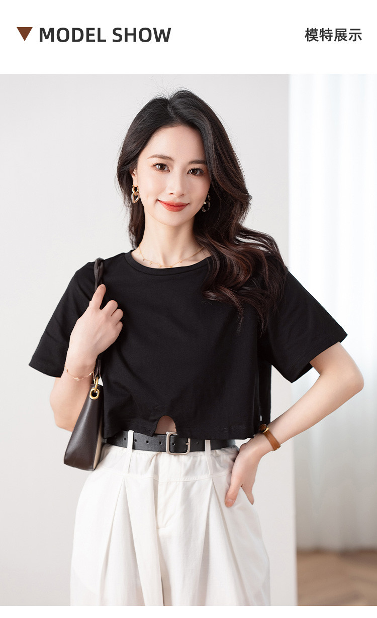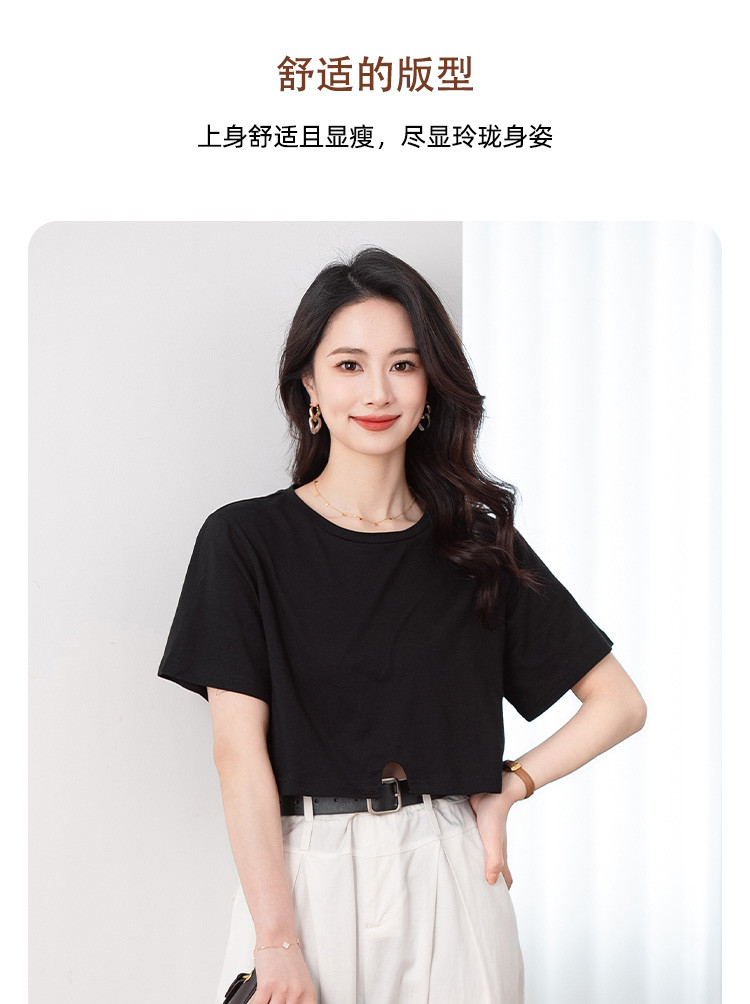 商品名称:圆领短袖体恤女夏季设计感短款辣妹装圆领纯色t恤上衣 079576