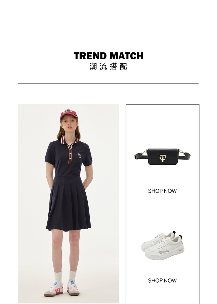 商品名称:【POLO裙】连衣裙女夏季活力运动感短袖中长款百褶裙 506177