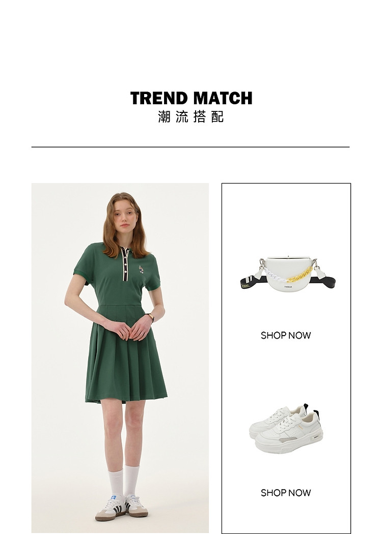 【POLO裙】连衣裙女夏季活力运动感短袖中长款百褶裙 506177