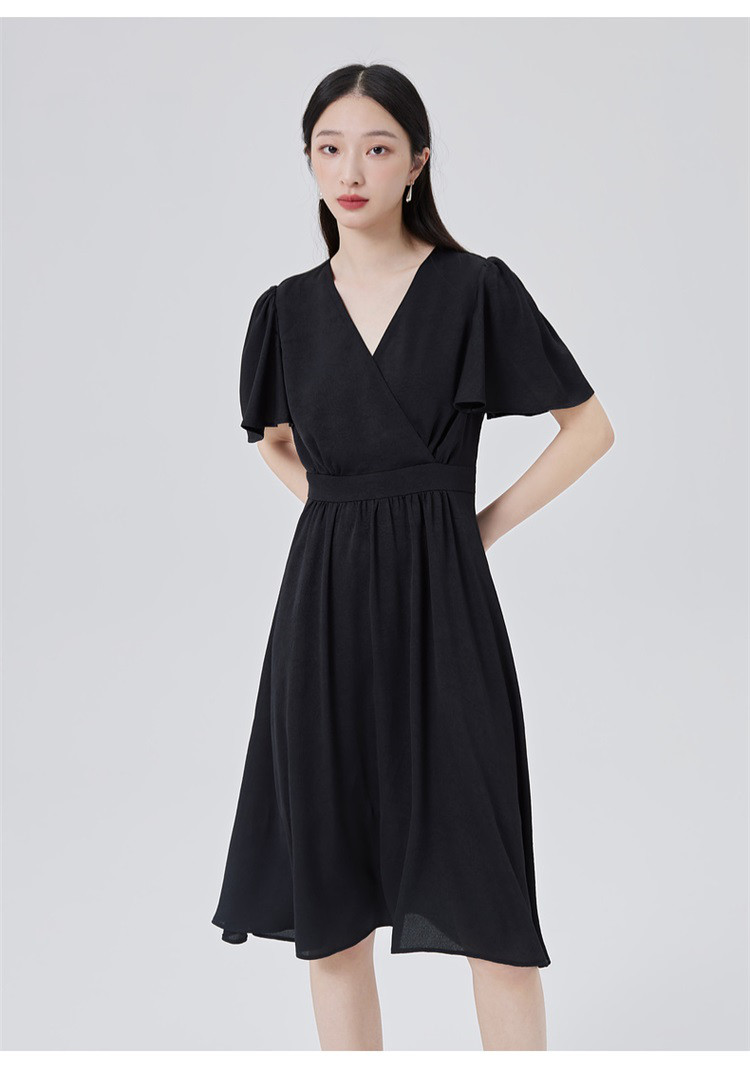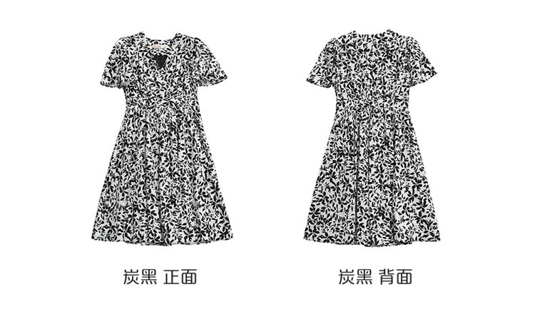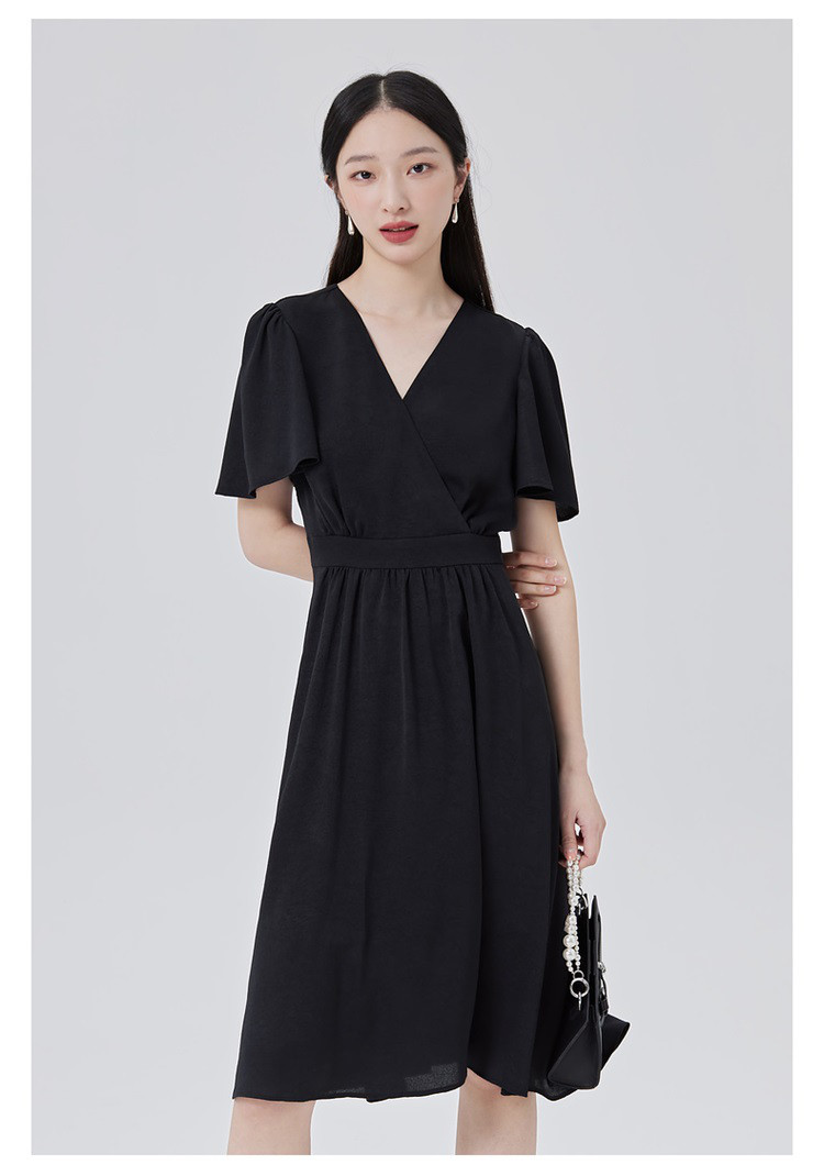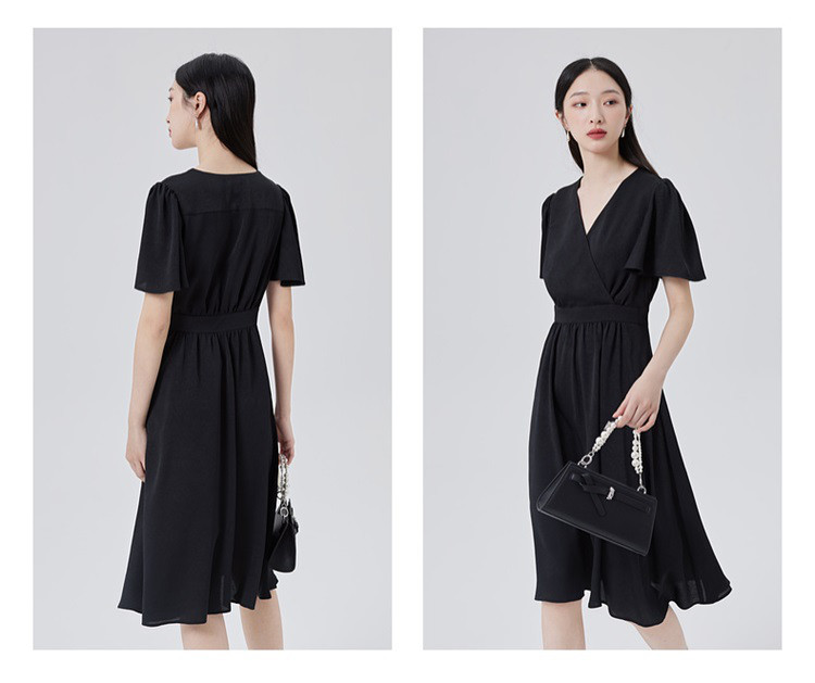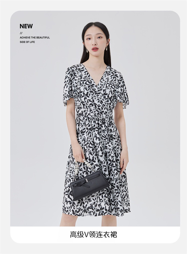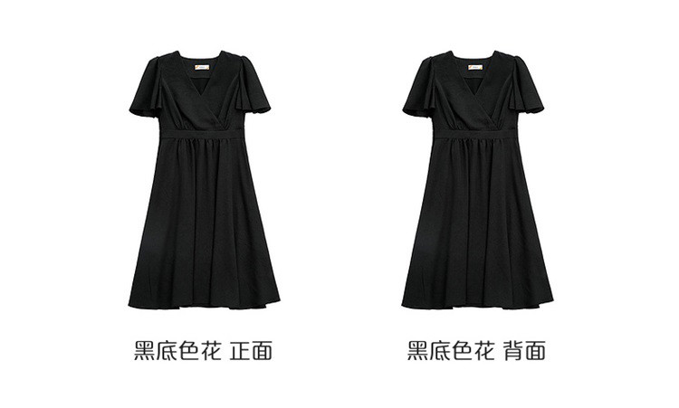 商品名称:【商场同款】高级气质V领连衣裙收腰显瘦A字长裙子女夏季短袖 383574