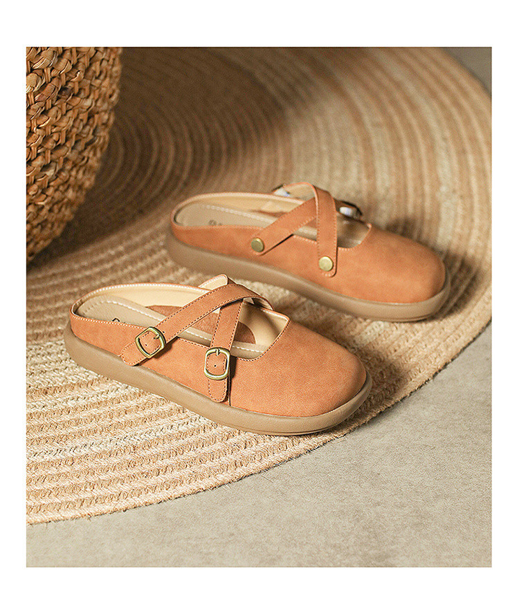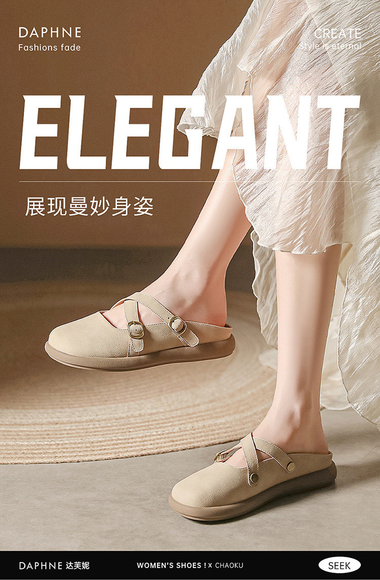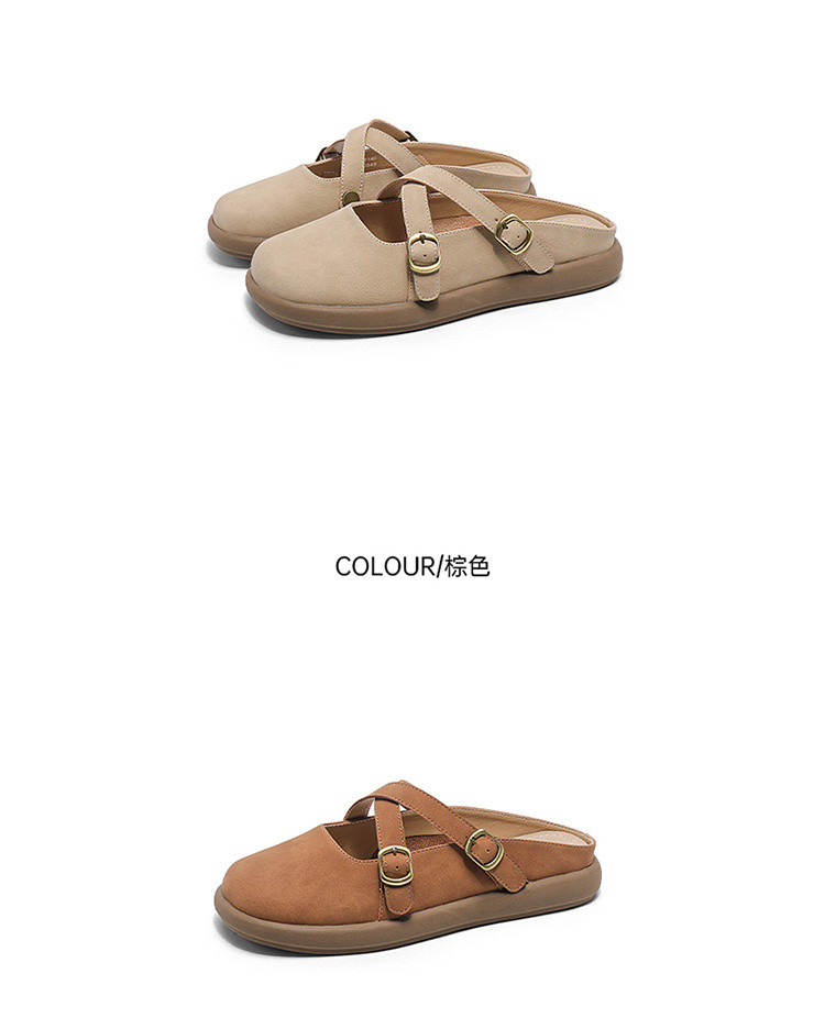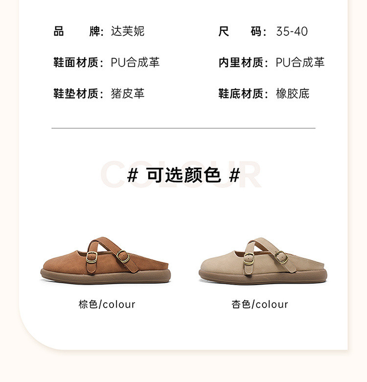 【舒适百搭】春夏勃肯鞋圆头套脚真皮垫学院百搭女穆勒单鞋女鞋 152730