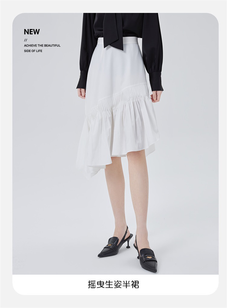 商品名称:【商场同款】夏季轻薄高腰显瘦A字裙不规则中长裙子女式半截裙 437910