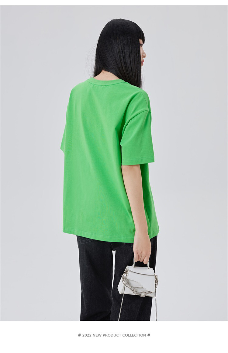 短袖T恤女夏季简约基础运动感小熊刺绣圆领T恤上衣女 233409