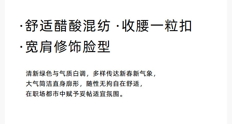 商品名称:【春季款】垂坠感醋酸干练一粒扣通勤款长袖休闲静奢西装外套 566939