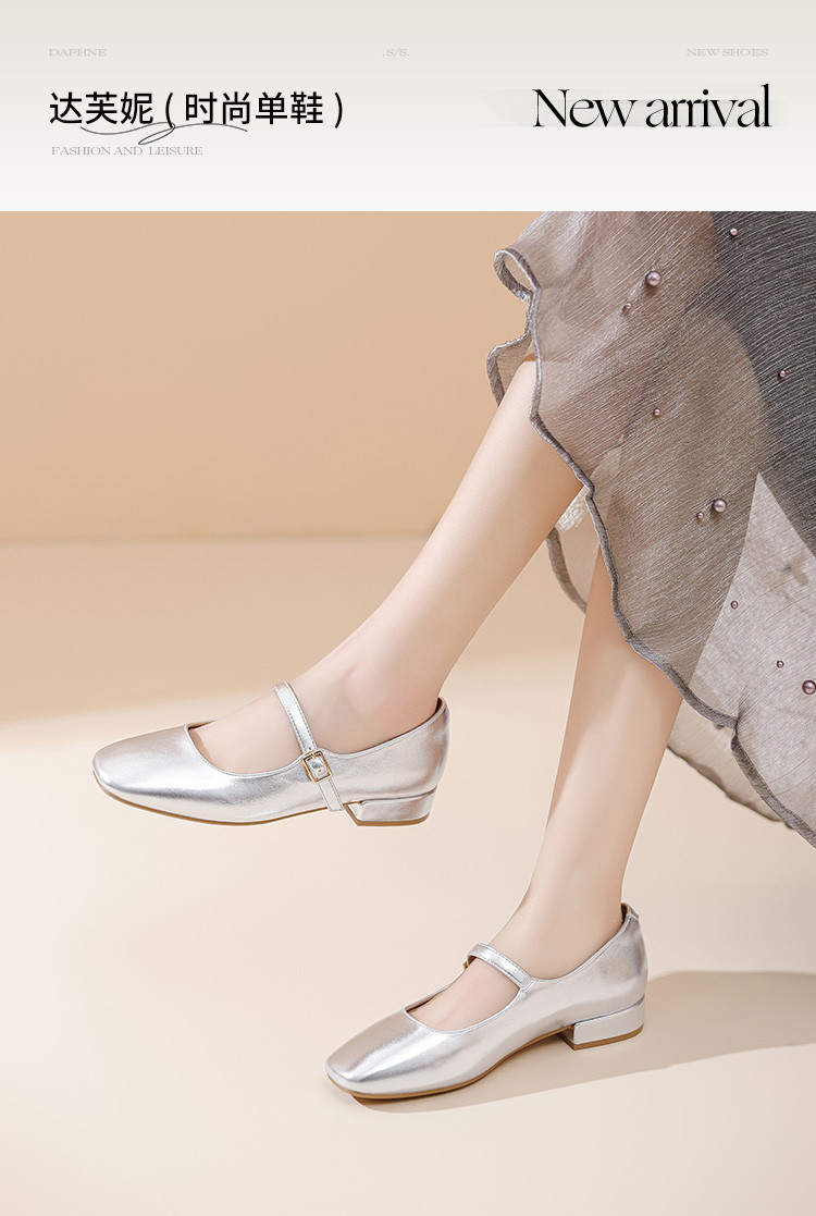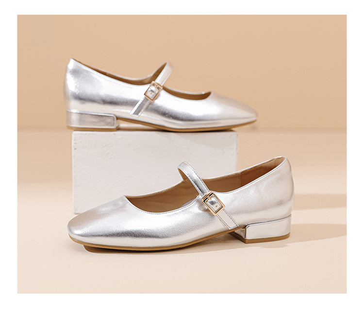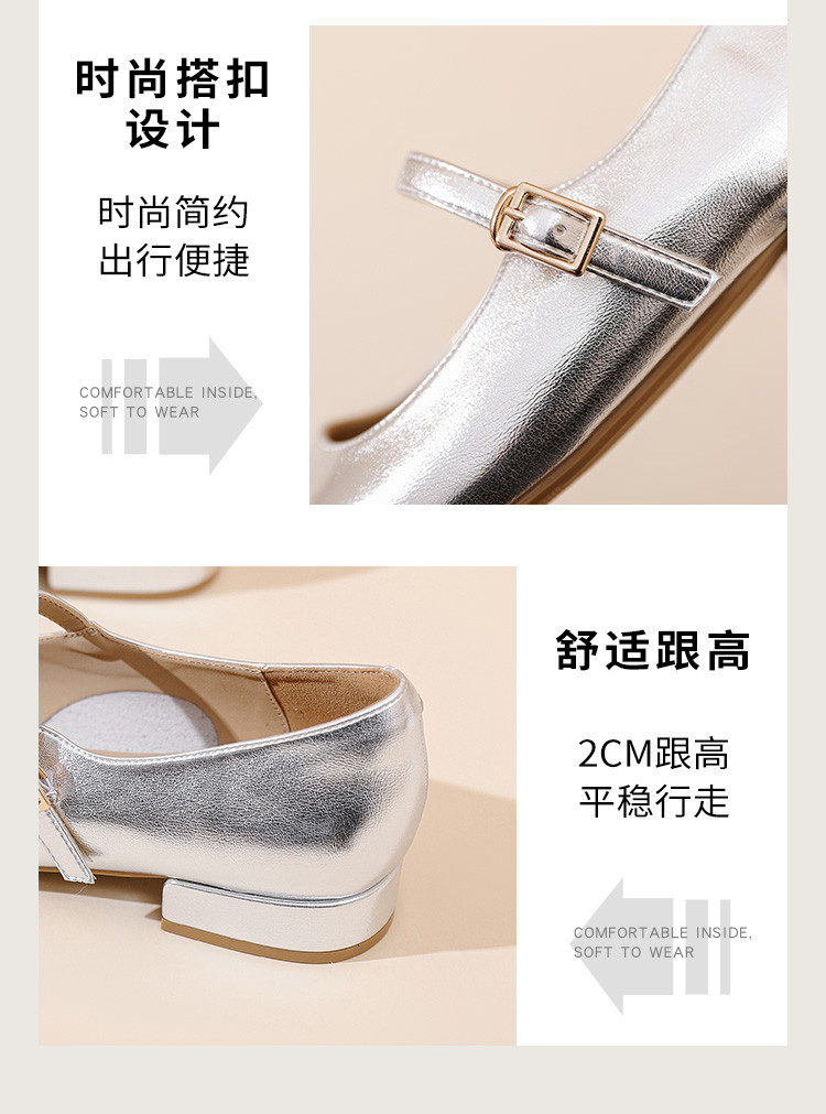 商品名称:单鞋女2024春季银色小皮鞋女法式复古低跟优雅百搭玛丽珍鞋 149274