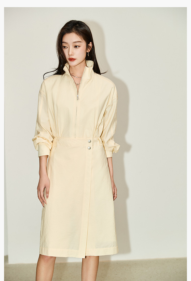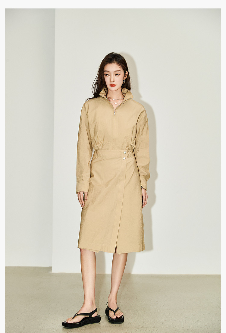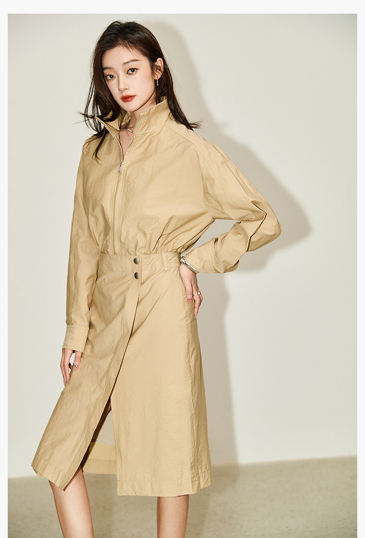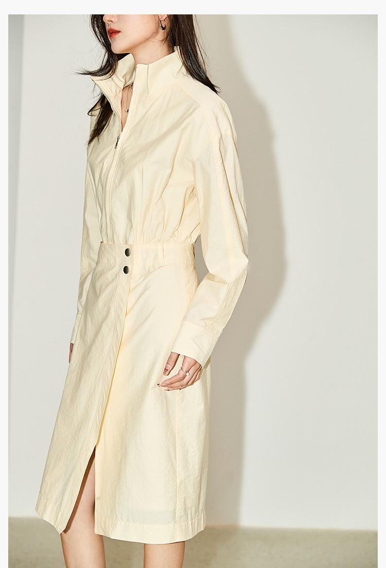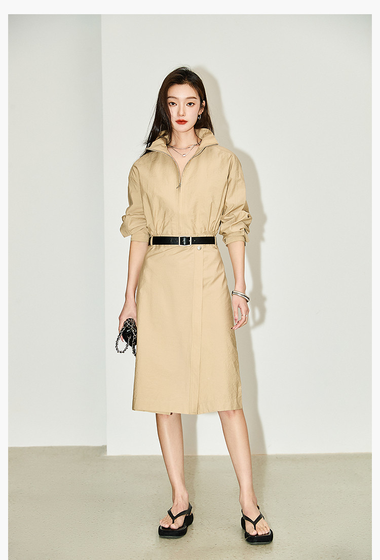 时尚都市通勤款纯色显瘦长款高腰风衣式连衣裙 156827
